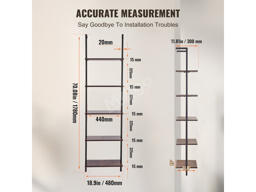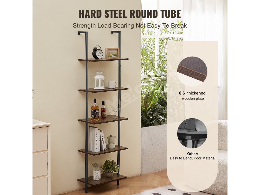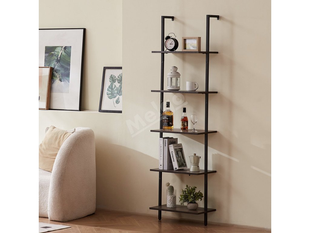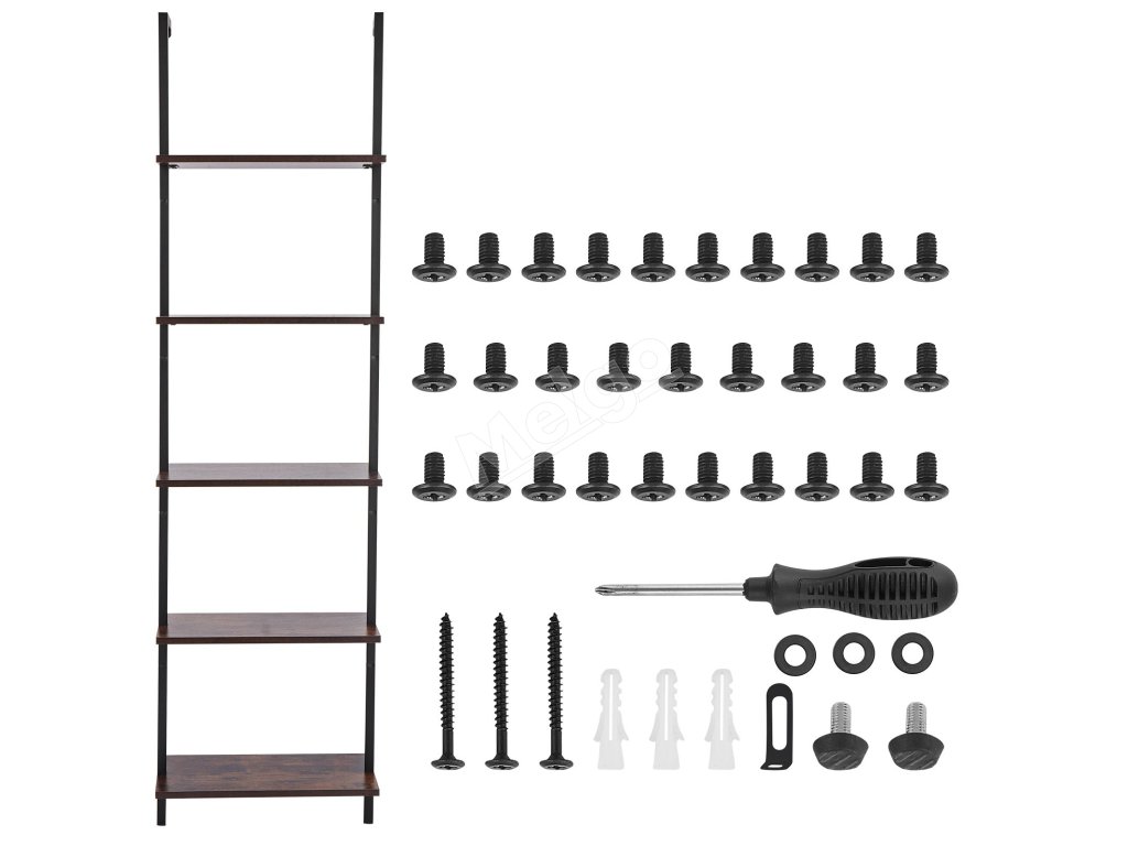 Nástenná rebríková polica 5 políc, 17.3×11.8in, s kovovým rámom