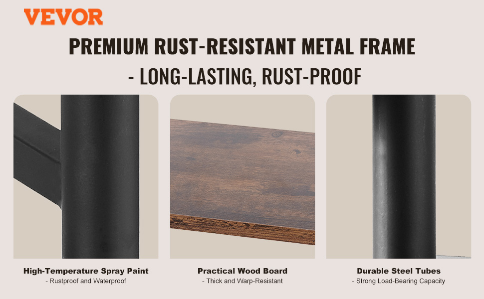 Naše police z kovových rúrok sú vyrobené z vysokokvalitných oceľových rúrok a povrch je ošetrený vysokoteplotným nástrekom, ktorý zabraňuje hrdzaveniu a je odolný voči vode, čo výrazne predlžuje životnosť výrobku.