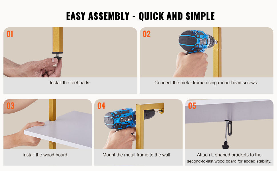 Nepotrebujete profesionálne náradie, na dokončenie montáže police stačí postupovať podľa návodu, čím ušetríte svoj čas a energiu!