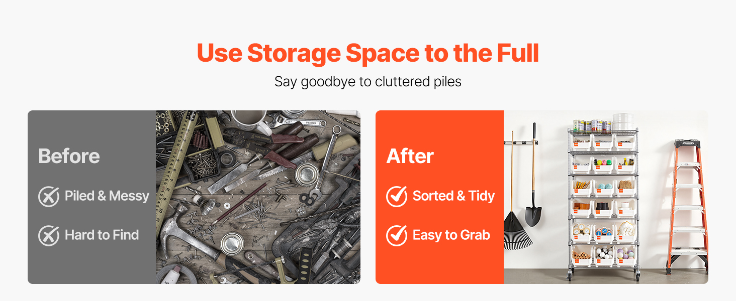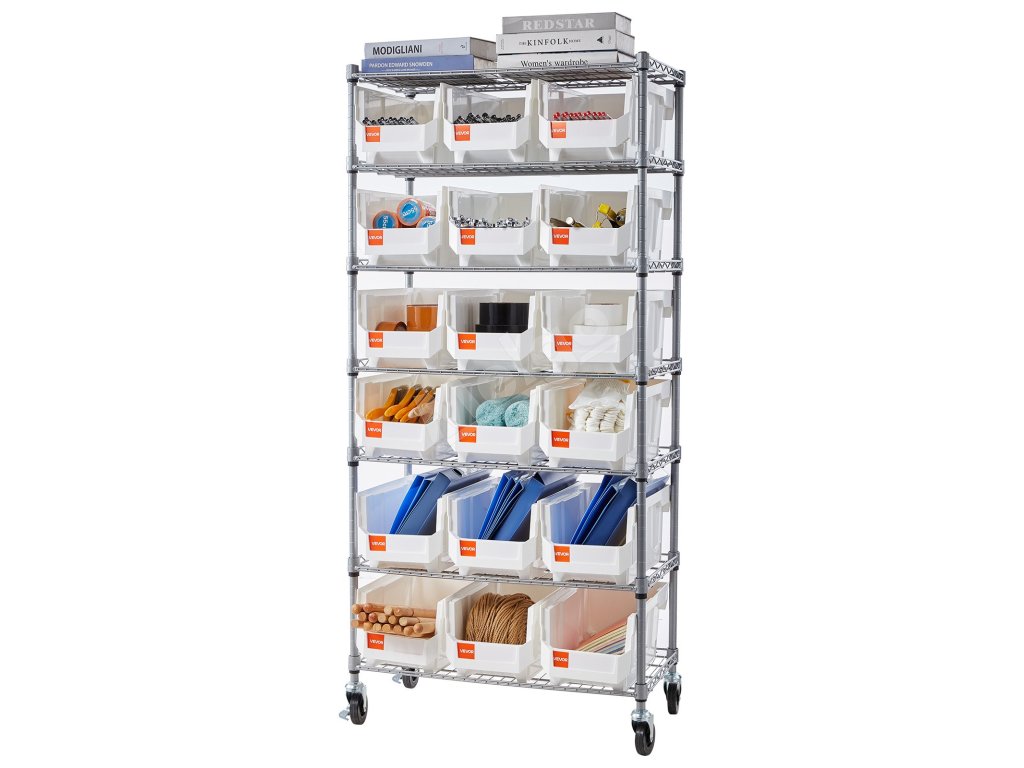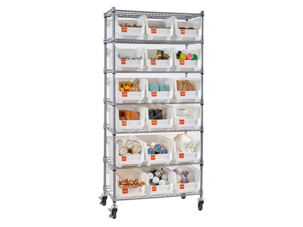 Tento regál na ukladanie košov spája vrstvené police s rôznymi košmi, aby sa rýchlo upokojil neporiadok. Vaše náradie, súčiastky a kancelárske kúsky nájdu svoj domov a váš pracovný proces dostane každý deň malý poriadok.