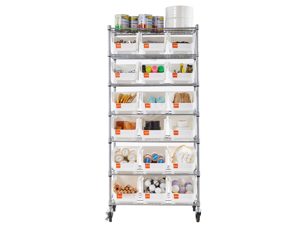 Mobilný stojan s 7 policami a 18 boxmi, oceľový na kolieskach