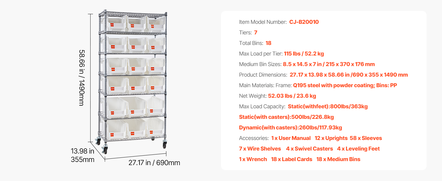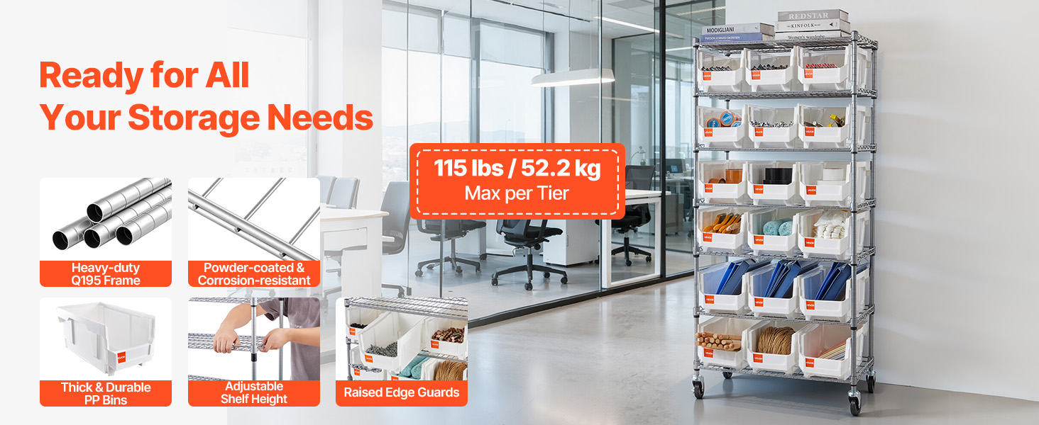 Každý regál na organizovanie zásobníkov unesie až 115 lb (52,2 kg) na isté každodenné používanie. Práškovo lakovaný rám Q195 odoláva opotrebovaniu, zatiaľ čo robustné koše z PP a vyvýšené koľajničky pomáhajú udržať predmety presne tam, kde ich chcete mať.