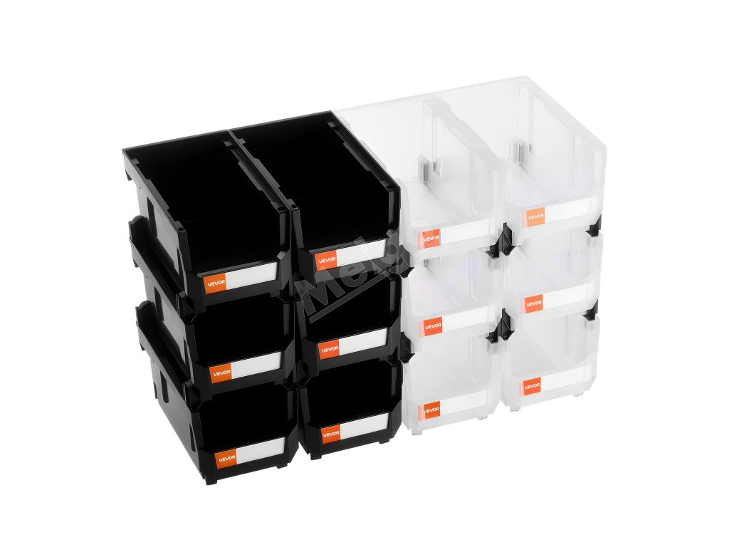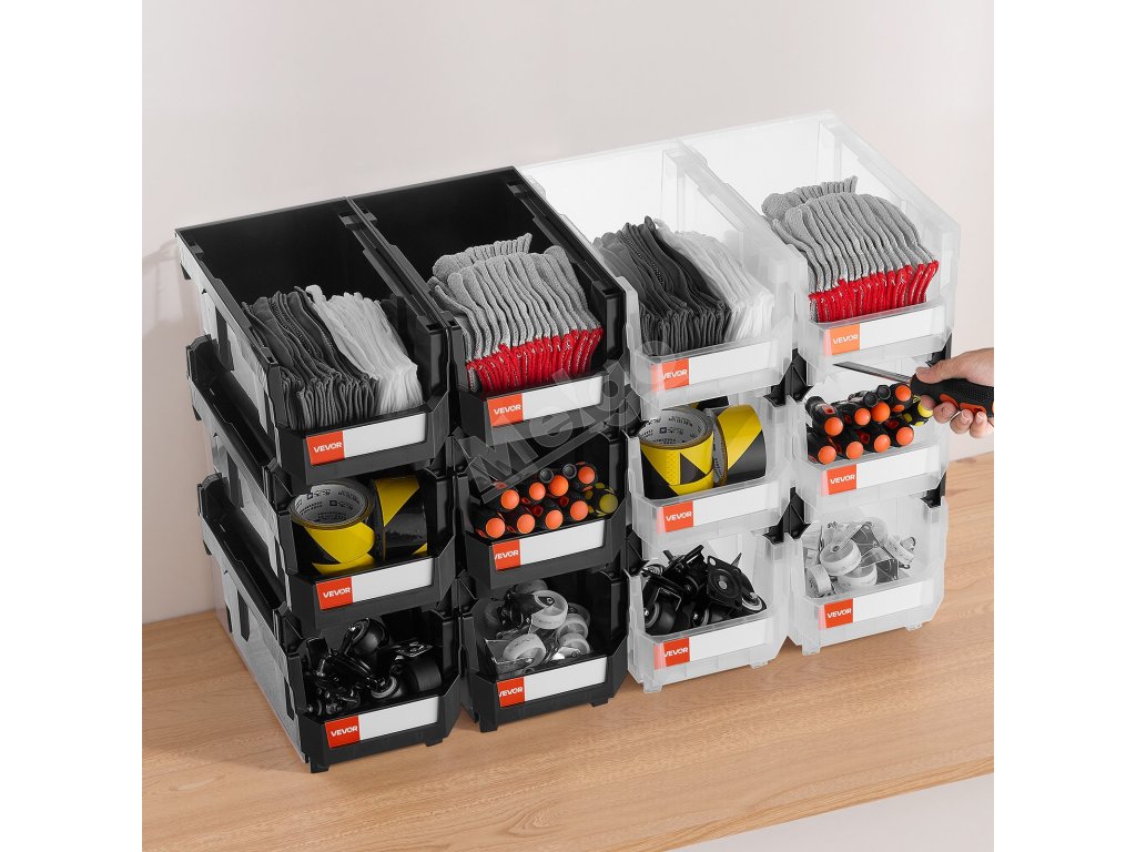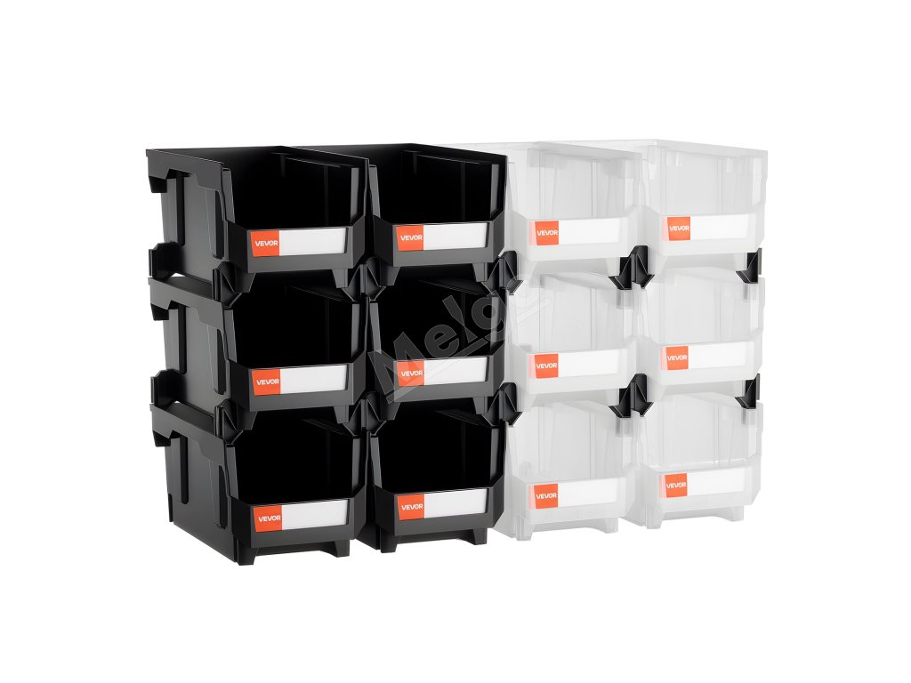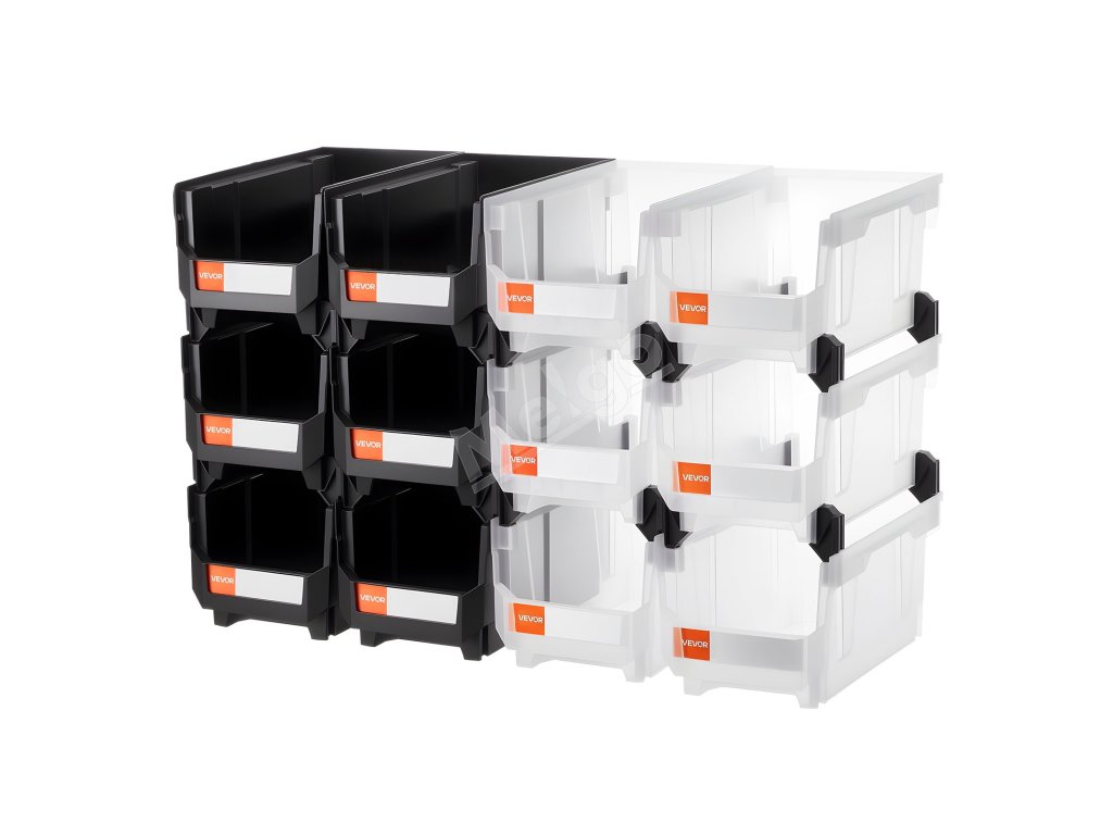 Plastové stohovateľné úložné boxy 12× 37.7×21.5×18 cm čierne/priehľadné