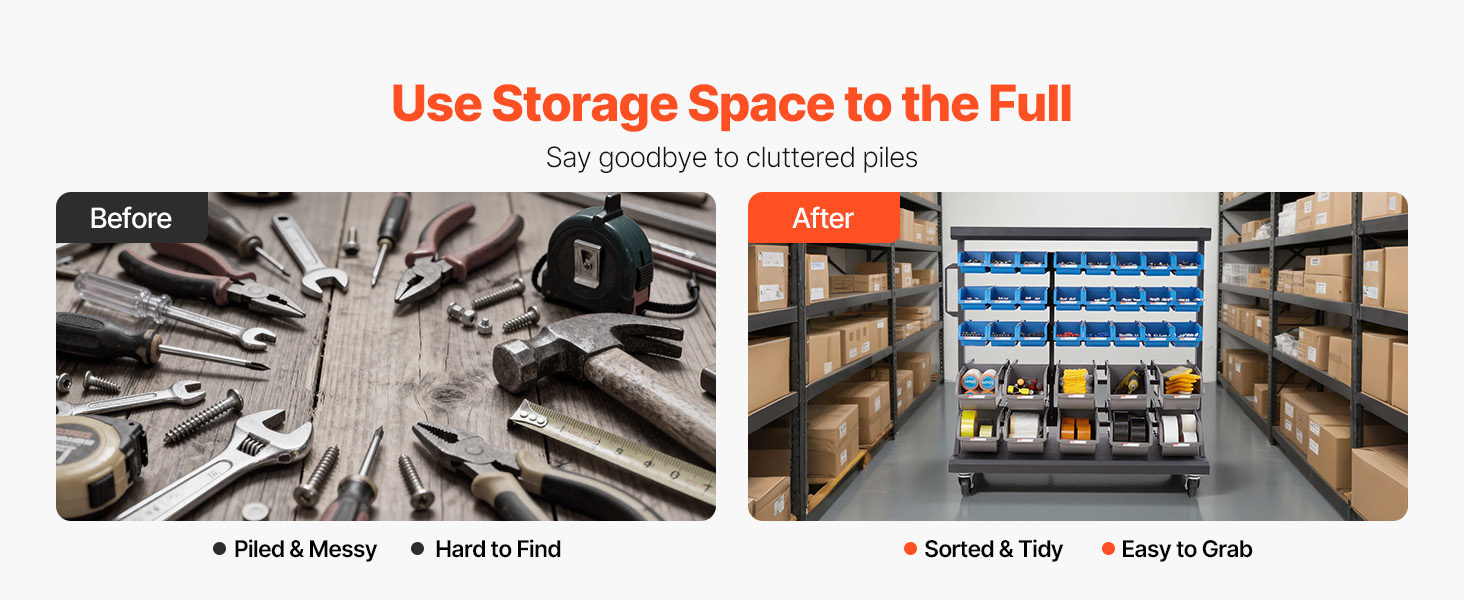 Tento garážový organizér na koše sa bez problémov hodí do garáží, dielní a priemyselných podláh. Vaše náradie, súčiastky, materiál a každodenné zásoby sa rýchlo zoradia. Usporiadanie vám pomôže zvýšiť poriadok a udržať produktivitu v chode.