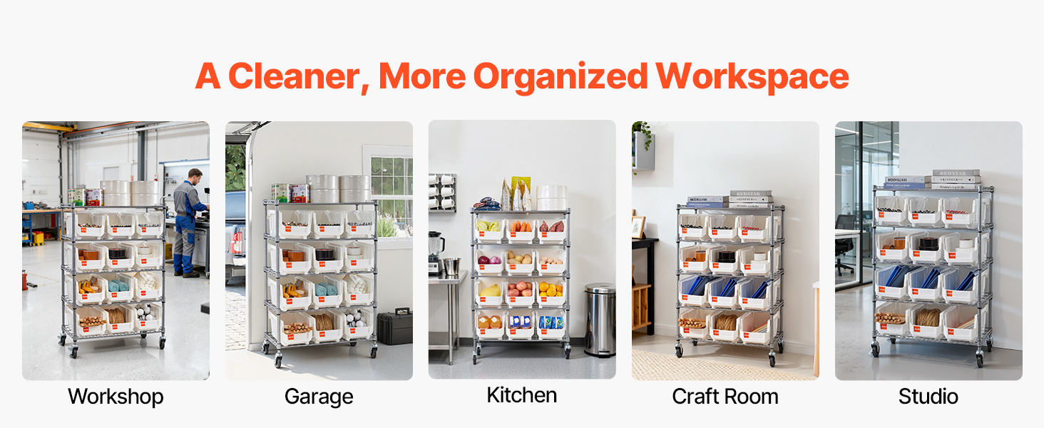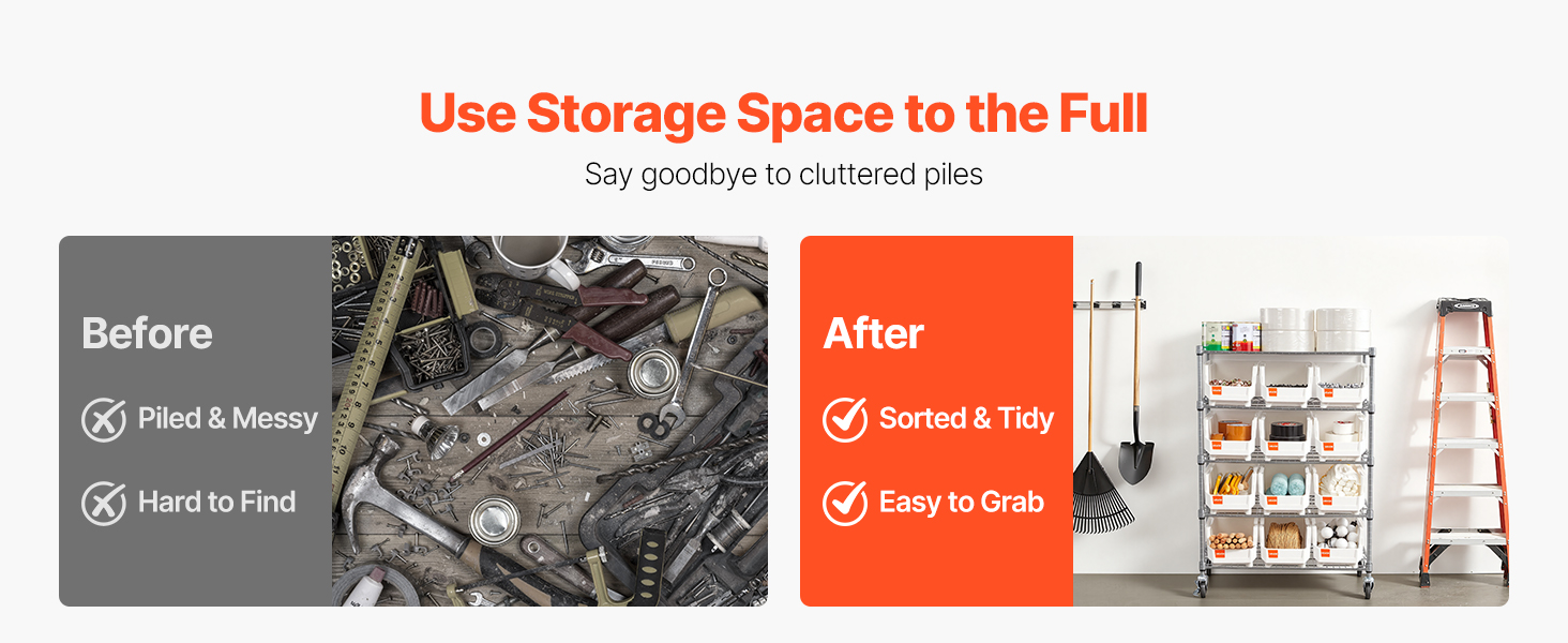 Tento regál na ukladanie košov spája vrstvené police s rôznymi košmi, aby sa rýchlo upokojil neporiadok. Vaše náradie, súčiastky a kancelárske kúsky nájdu svoj domov a váš pracovný proces dostane každý deň malý poriadok.