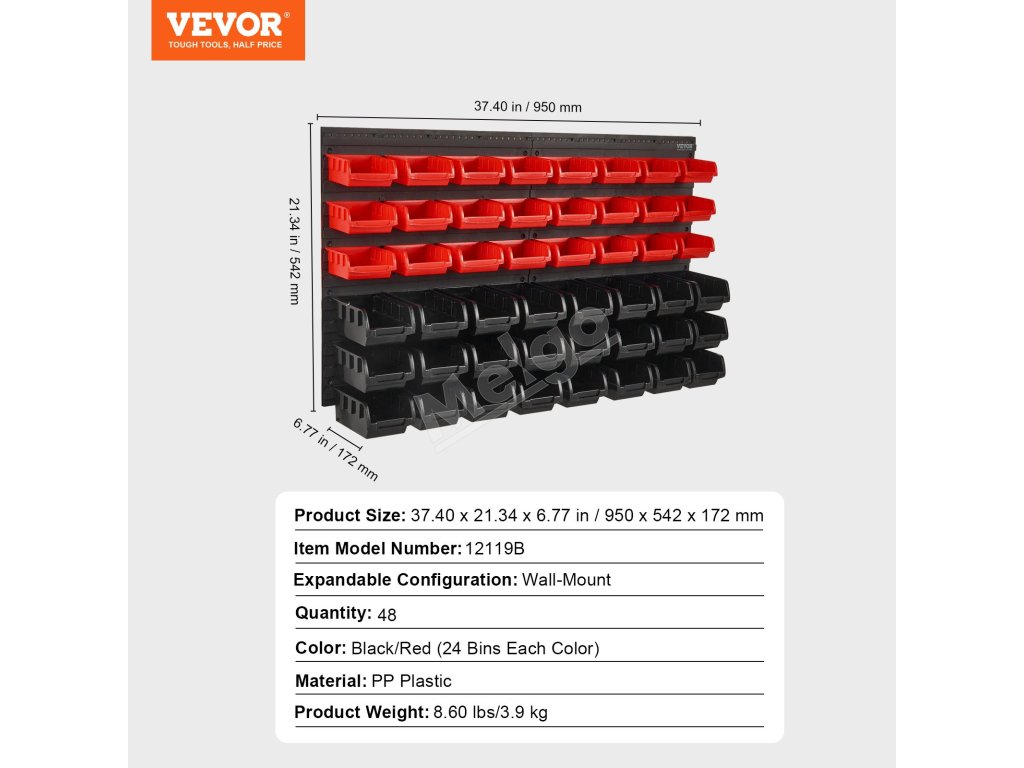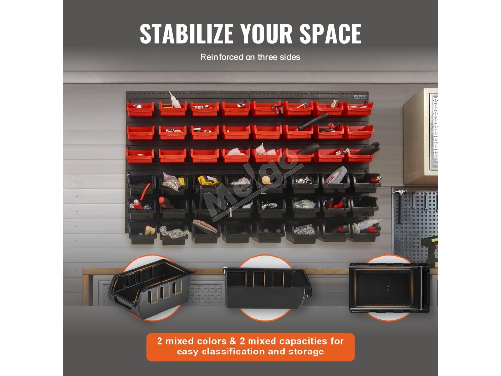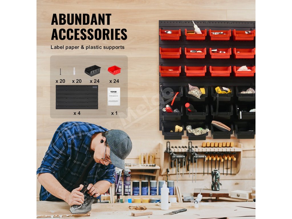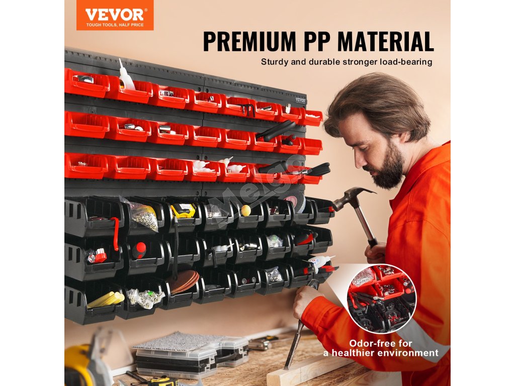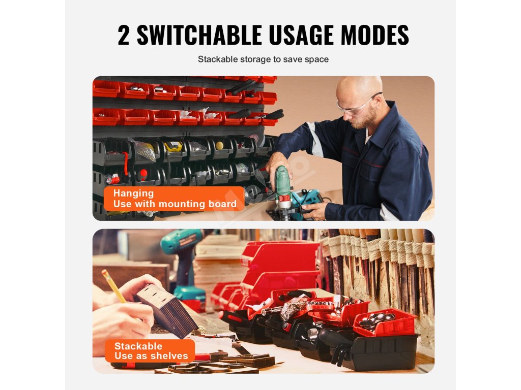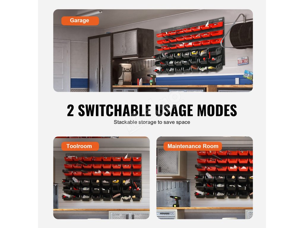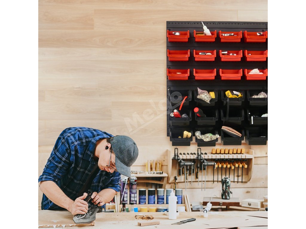 Nástenný organizér s 48 priehradkami na skrutky a matice, plastový