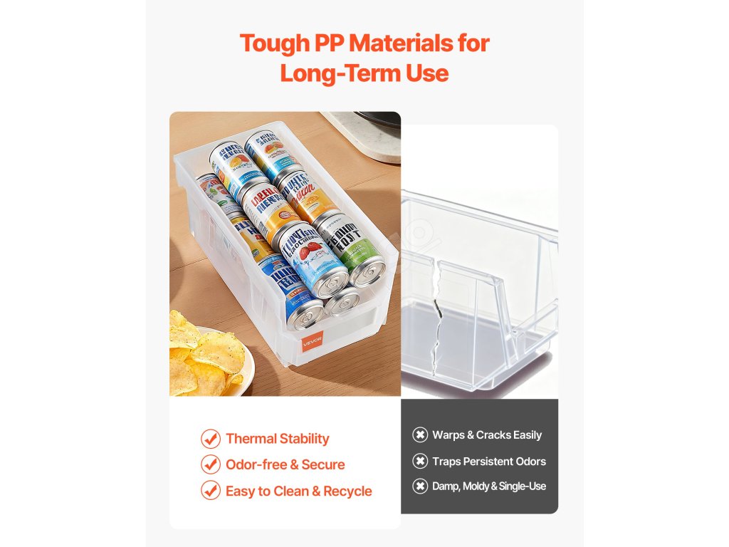 A3: Áno, hladký povrch z PP sa ľahko utiera vlhkou handričkou a je odolný voči škvrnám a zápachu, čím udržiava zásobníky svieže pri dlhodobom používaní.