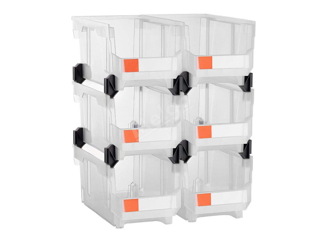 Plastové stohovateľné boxy 37.7×21.5×18 cm, 6 ks, priehľadné