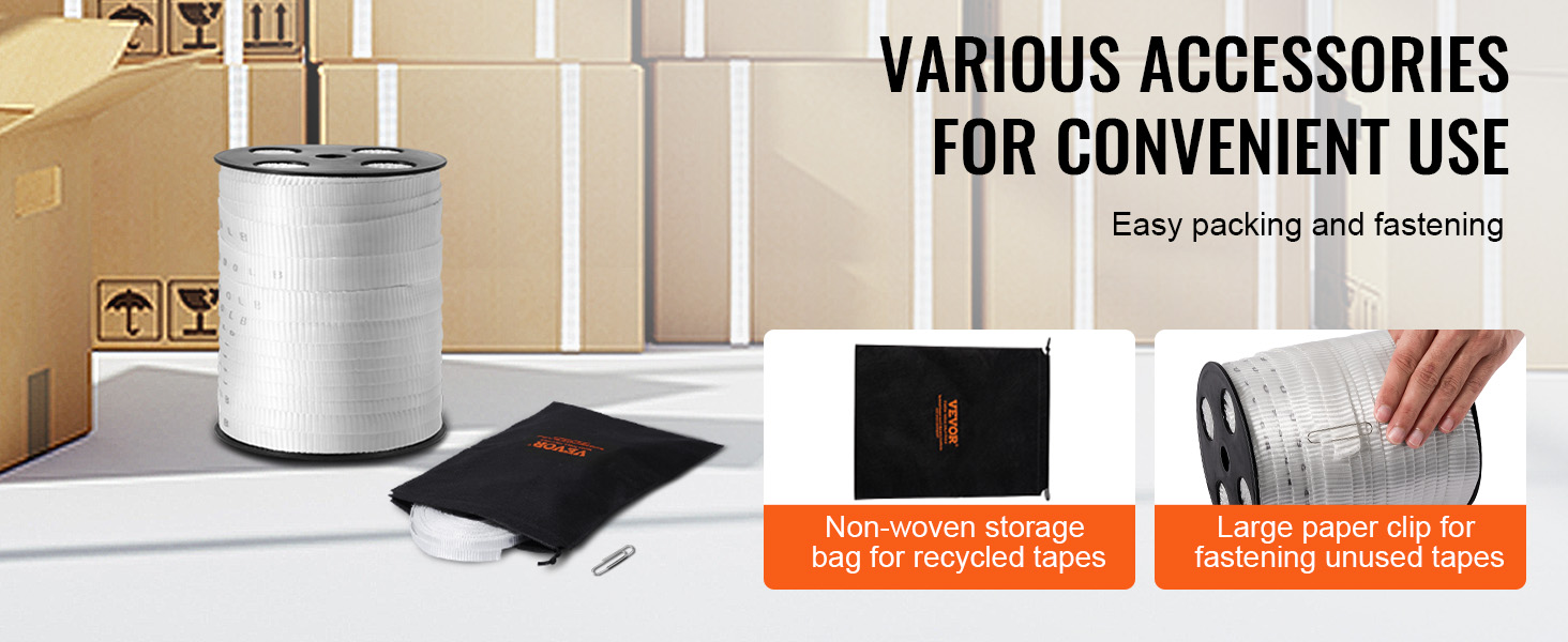 Postaráme sa o vaše pohodlie! Polyesterová vyťahovacia páska VEVOR sa dodáva s netkaným úložným vreckom na jednoduchú organizáciu použitých pások a veľkým uzáverom v štýle sponky, aby boli nepoužité pásky bezpečné a dostupné.