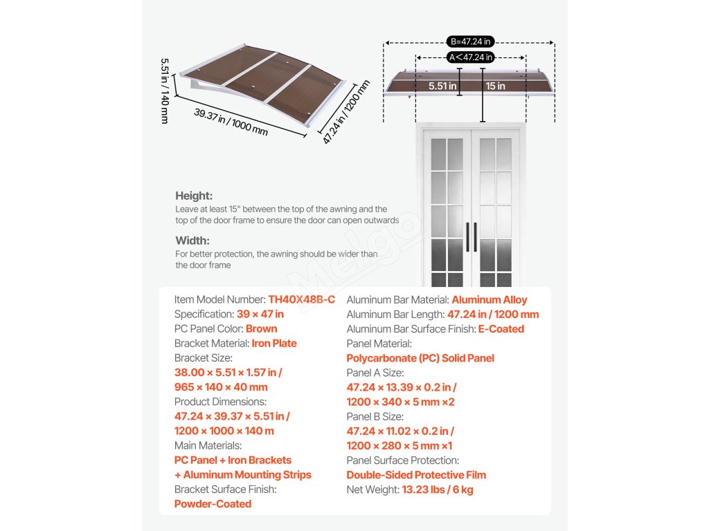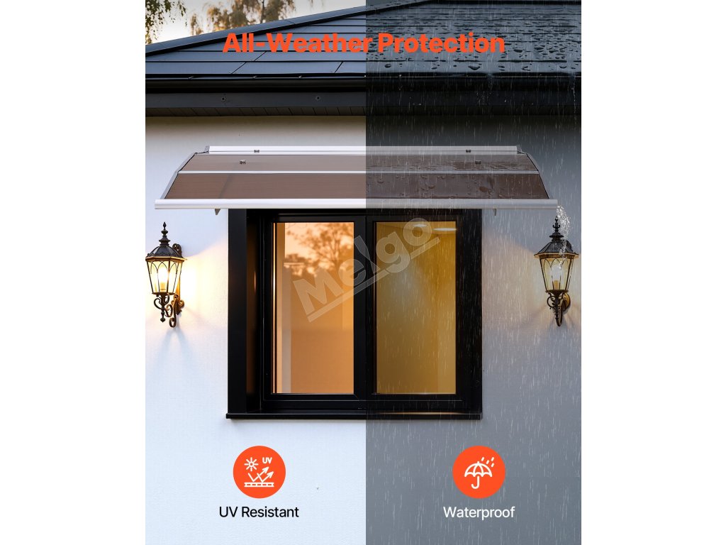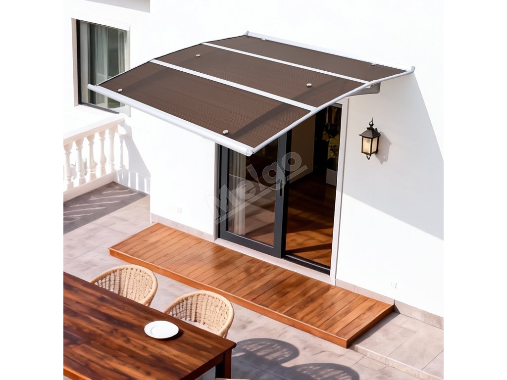 Polykarbonátová markíza na okenné dvere je vybavená zväčšeným a vylepšeným odtokovým žľabom, ktorý efektívne odvádza dažďovú vodu od vchodu. Pomáha zabrániť vzniku klzkých povrchov a zároveň poskytuje spoľahlivé riešenie ochrany pred poveternostnými vplyvmi v každom ročnom období s čistým, moderným vzhľadom.