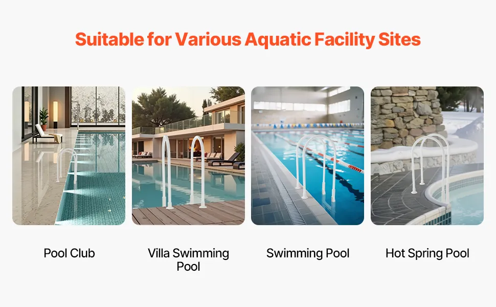 Tento bazénový rebrík sa ľahko inštaluje, či už ide o vnútorný alebo vonkajší bazén alebo aquapark. Univerzálny štýl nášho bazénového rebríka sa bez problémov začlení do rôznych dizajnových riešení domácnosti.