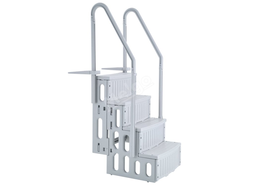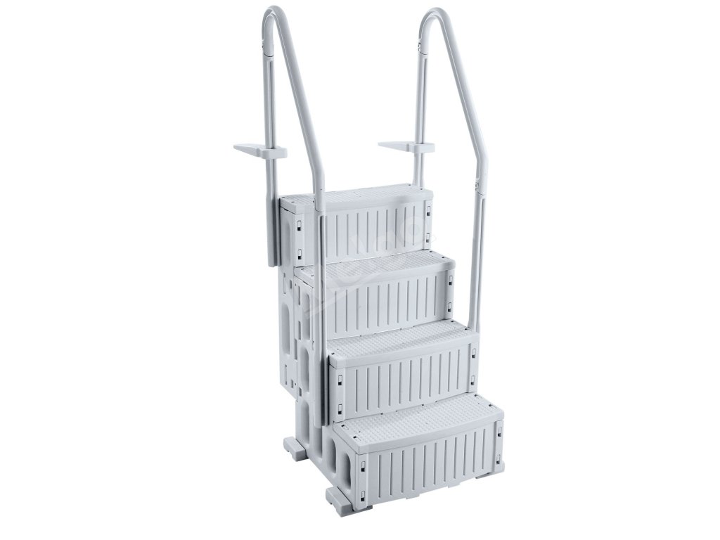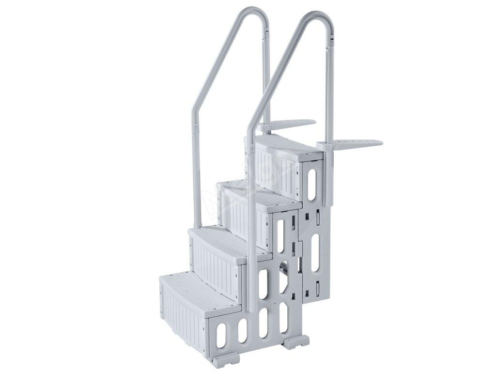 Tieto bazénové schody vyrobené z odolného PE materiálu majú protišmykové štruktúrované stupne, mimoriadne hrubé nášľapy a robustné zábradlia, ktoré zabezpečujú bezpečný vstup a výstup z bazéna.