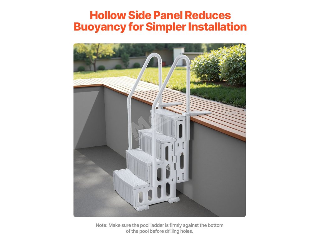Tento rebrík, vybavený panelmi s nastaviteľnou výškou a predvŕtanými otvormi, umožňuje rýchlu a jednoduchú inštaláciu. Stačí postupovať podľa pokynov, môžete ho nainštalovať do svojho bazéna rovnako ako profesionál a začať ho ihneď používať!