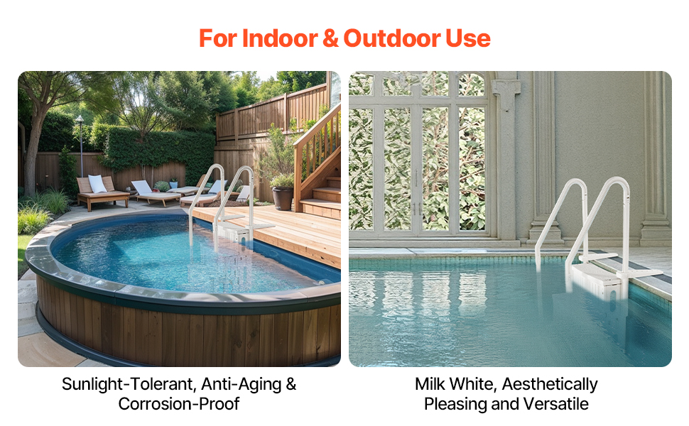 Tento bazénový rebrík sa ľahko inštaluje, či už ide o vnútorný alebo vonkajší bazén alebo aquapark. Mliečna biela povrchová úprava nášho bazénového rebríka sa bez problémov začlení do rôznych štýlov interiéru.