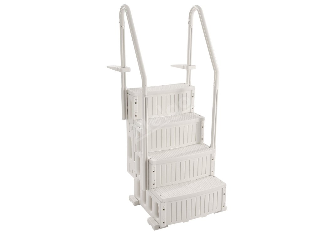 Tieto bazénové schody vyrobené z odolného PE materiálu majú protišmykové štruktúrované stupne, mimoriadne hrubé nášľapy a robustné zábradlia, ktoré zabezpečujú bezpečný vstup a výstup z bazéna.