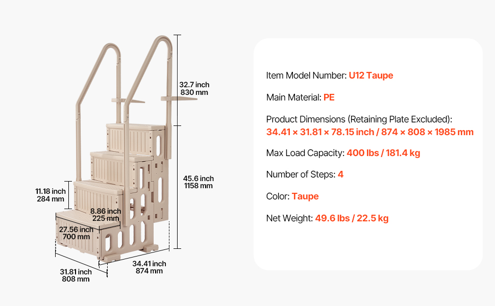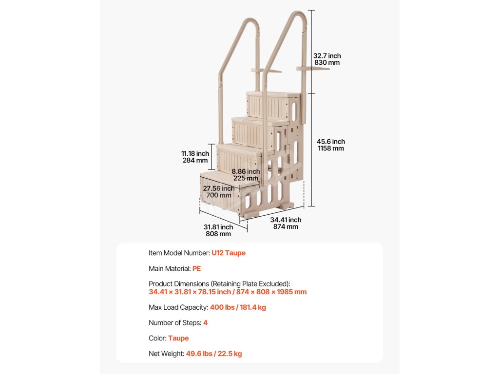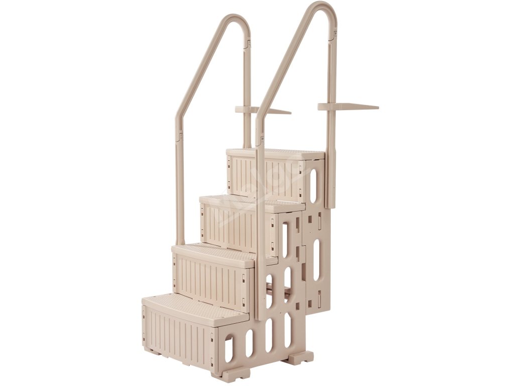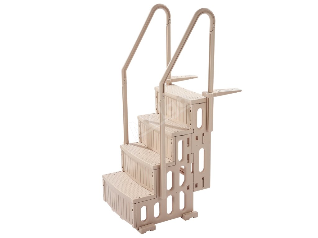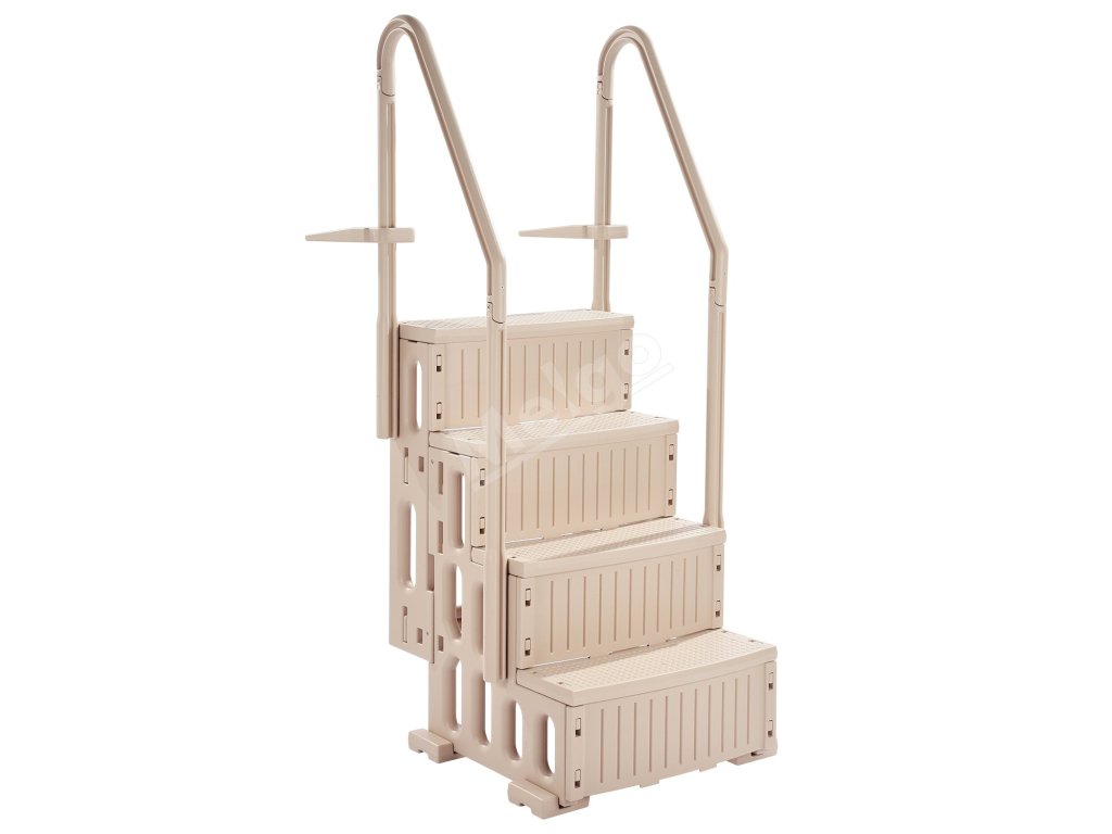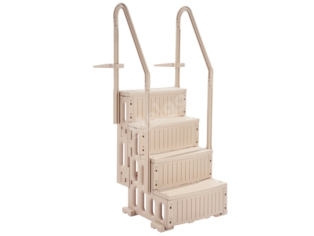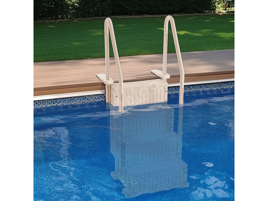 Tieto bazénové schody vyrobené z odolného PE materiálu majú protišmykové štruktúrované stupne, mimoriadne hrubé nášľapy a robustné zábradlia, ktoré zabezpečujú bezpečný vstup a výstup z bazéna.