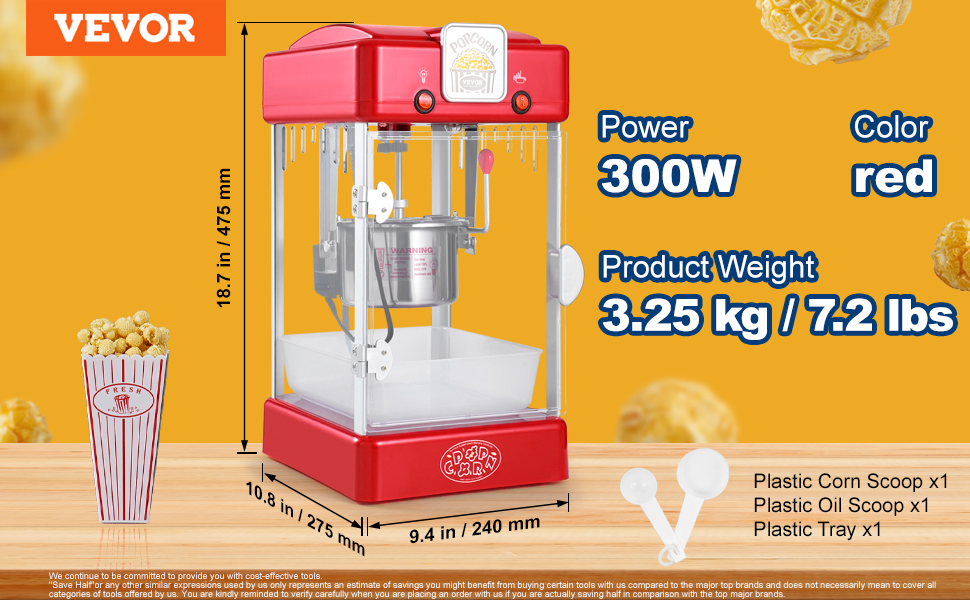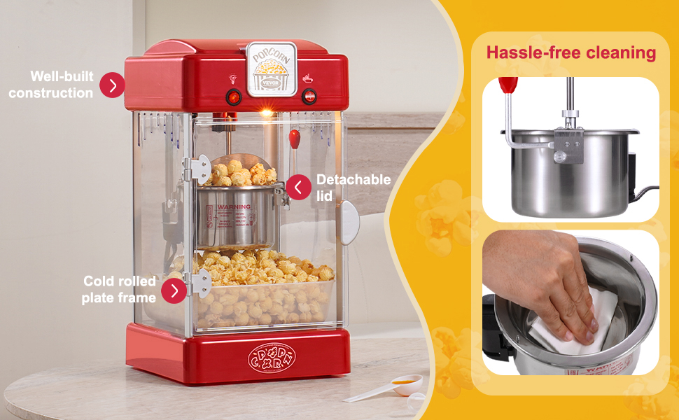 Tento ľahký stroj na výrobu popcornu vám poskytne pokoj pri pohostení hostí. Odolné materiály umožňujú pripraviť chutný popcorn v akomkoľvek prostredí. Je čas vychutnať si dávku za dávkou čerstvého popcornu!