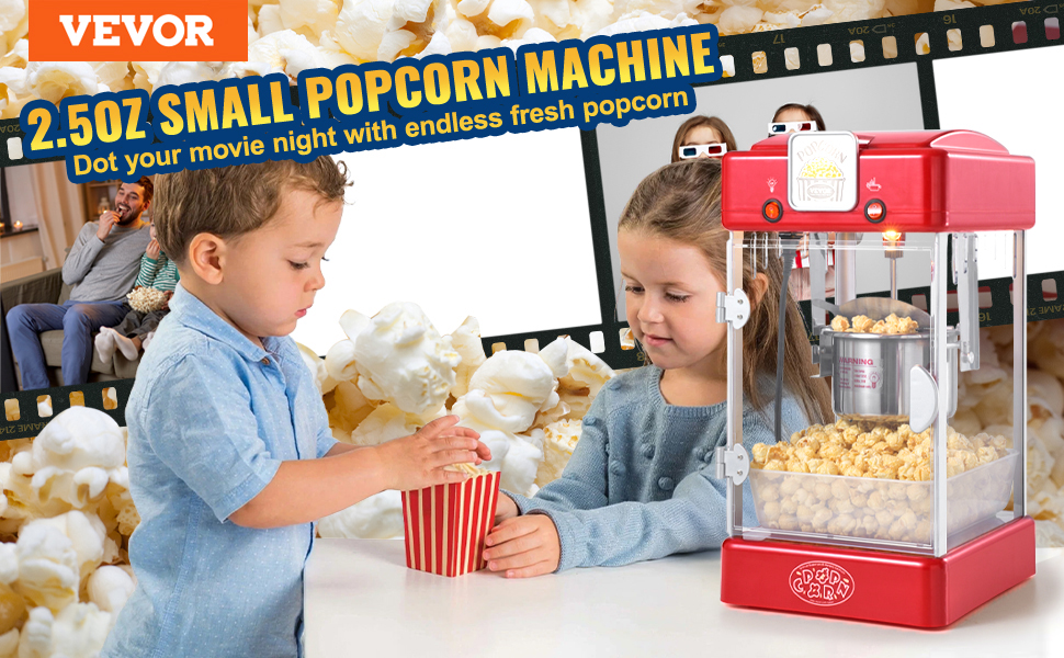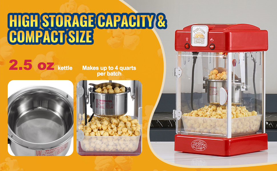 Multifunkčný popkornovač s objemom 2,5 oz je navrhnutý s vnútornými LED svetlami, ktoré poskytujú jasný výhľad a vytvárajú atmosféru kina, čo je ideálne pre rodiny, ktoré si chcú užiť skvelý filmový večer!