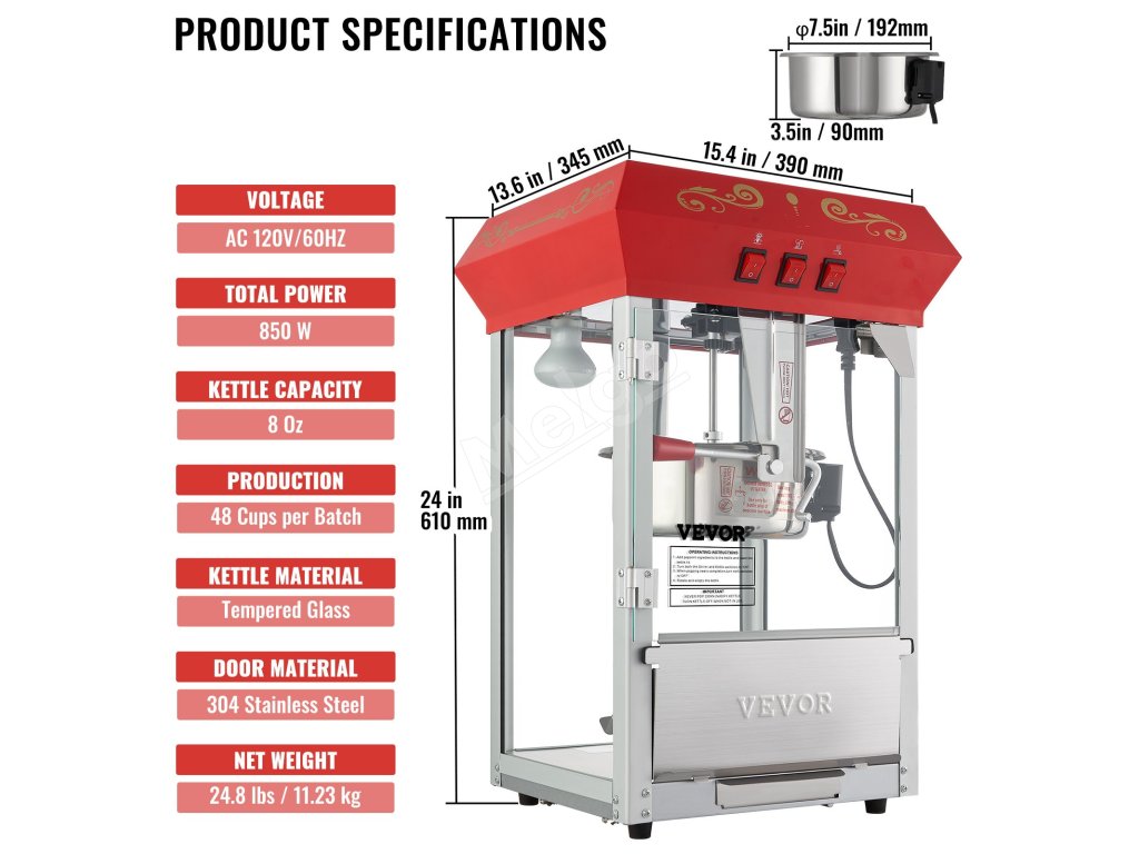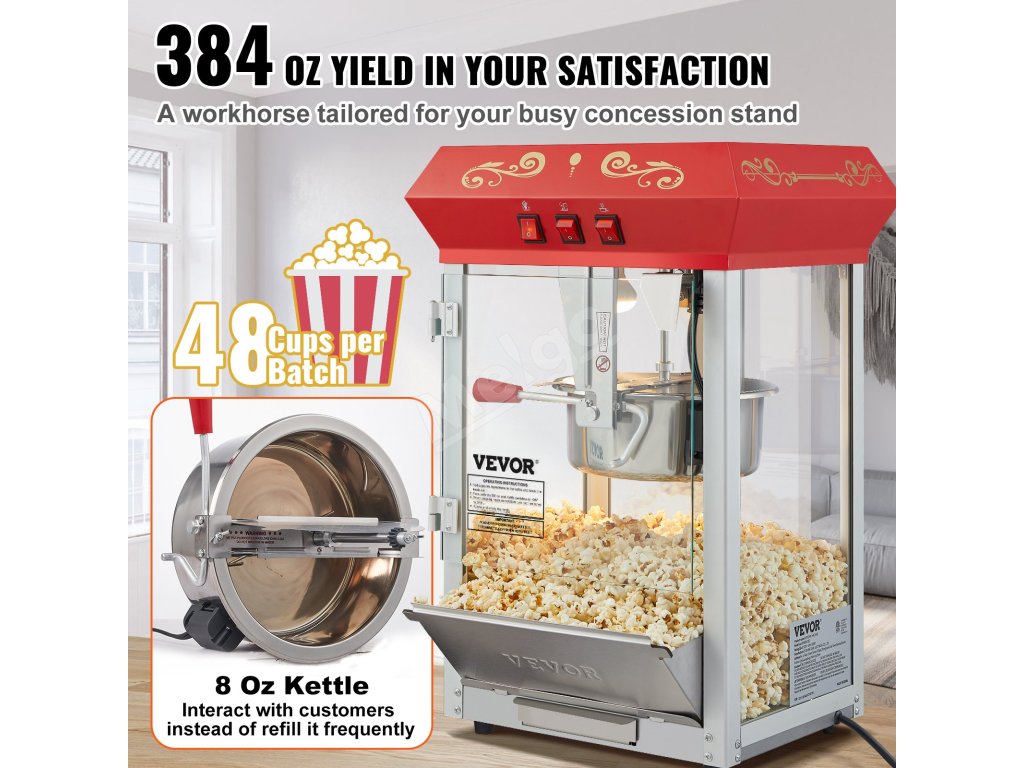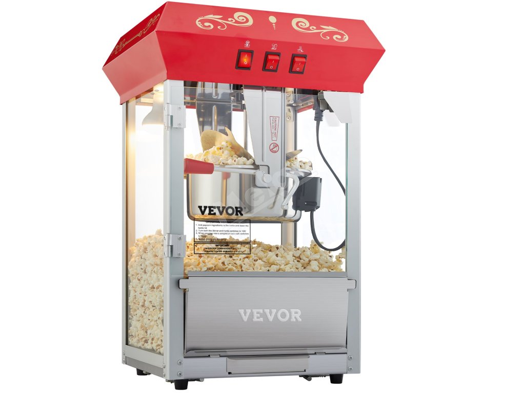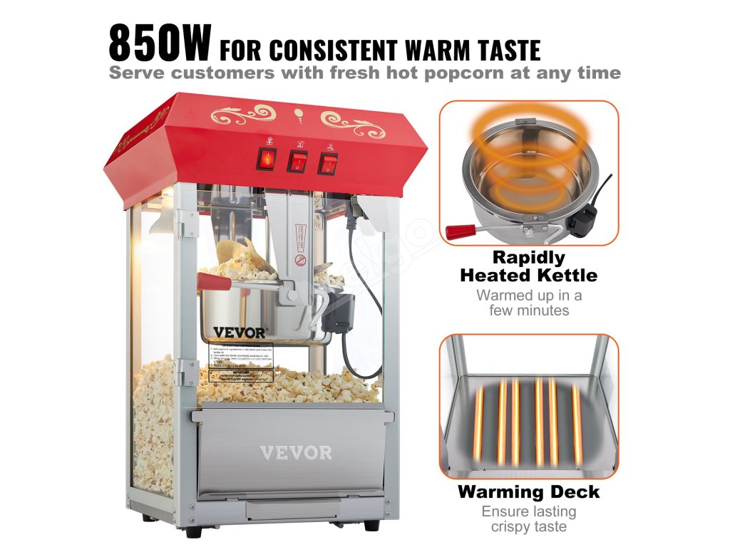 Tento vysokokapacitný komerčný popkornovač vám zaručí, že budete pripravení pri pohostení hostí. Odolné materiály produkujú lahodný popcorn na každú príležitosť. Je čas vychutnať si dávku za dávkou čerstvého popcornu!