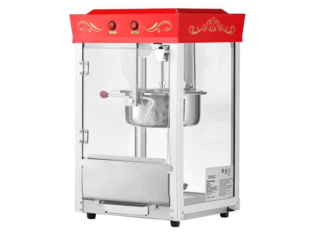 Stroj na popcorn nerezový kotol 0.2kg 800W stolný 48 cups s dvierkami