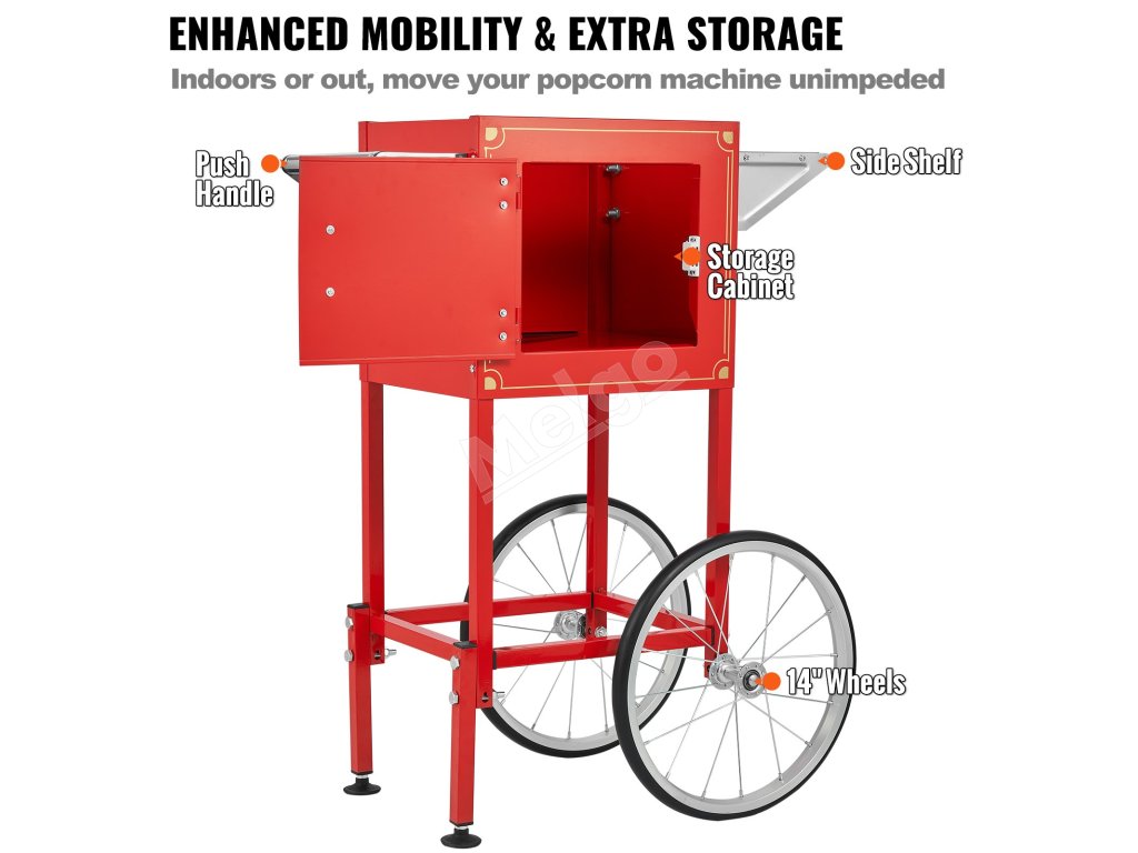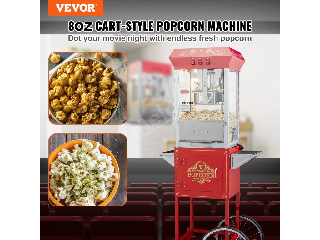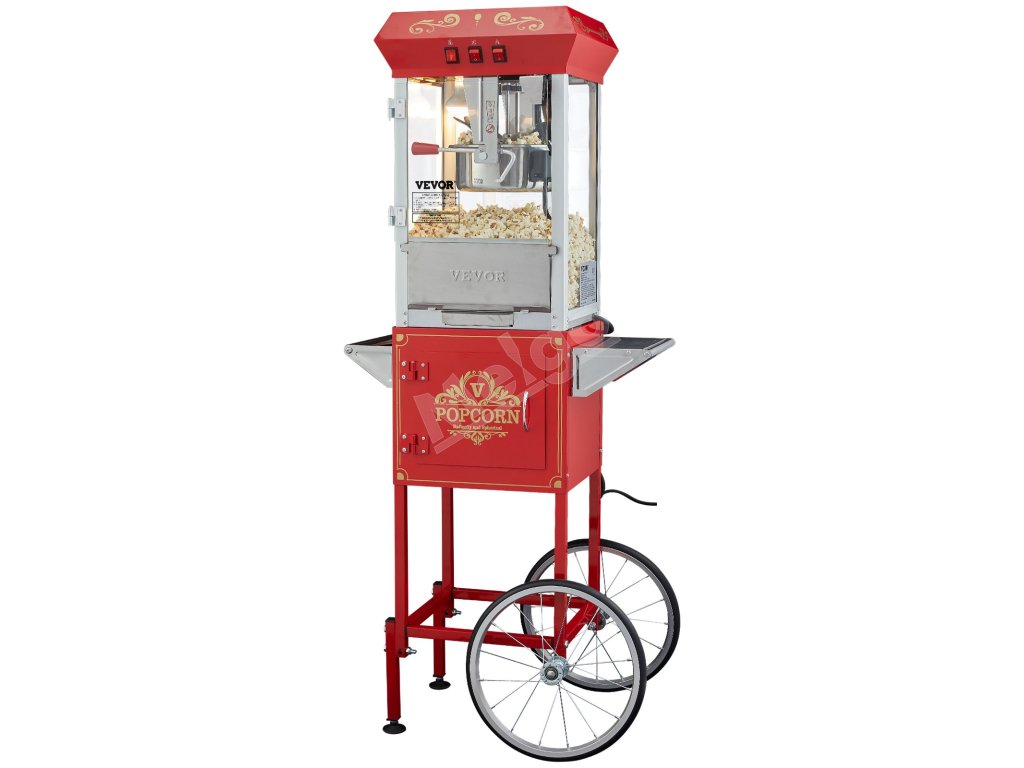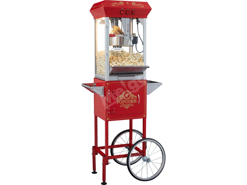 Stroj na popcorn s vozíkom 850W, 8 Oz kotol, 48 cups, kalené sklo