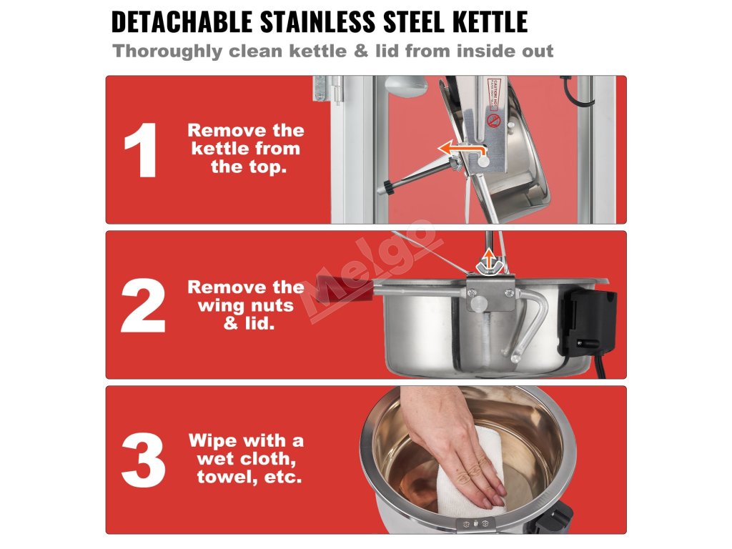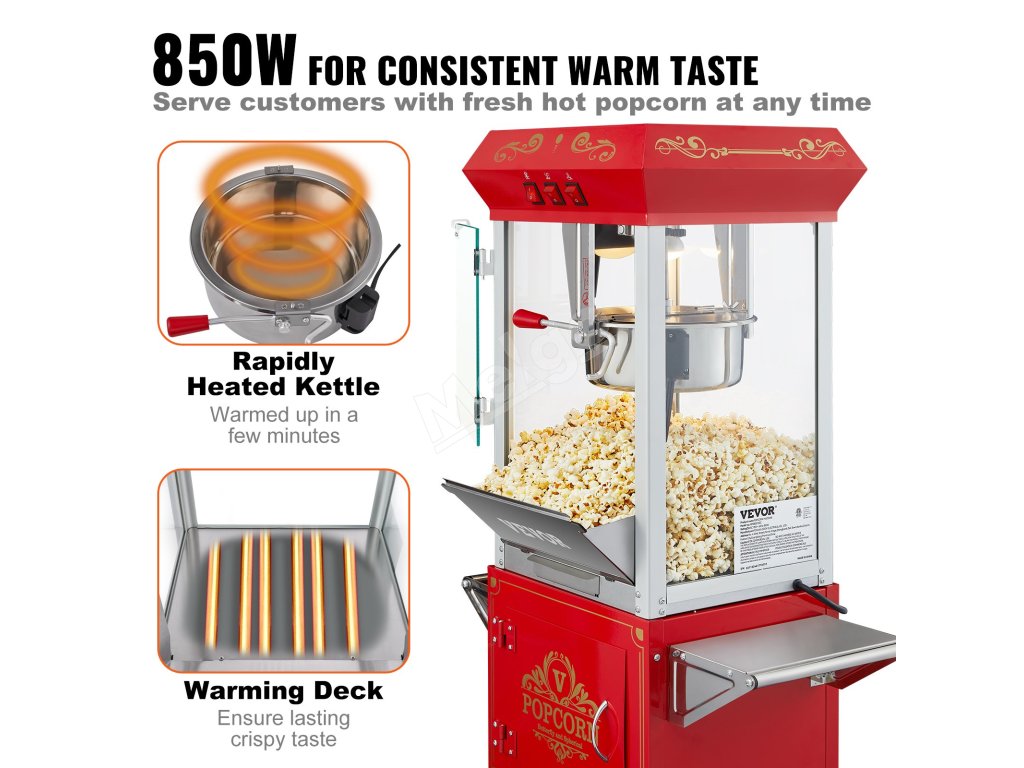 Tento vysokokapacitný komerčný popkornovač vám zaručí, že budete pripravení pri pohostení hostí. Odolné materiály produkujú lahodný popcorn na každú príležitosť. Je čas vychutnať si dávku za dávkou čerstvého popcornu!