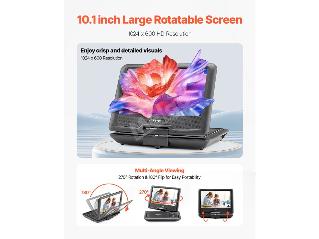 Prenosný dvd prehrávač 10.1 inch hd otočný displej, 4 h batéria