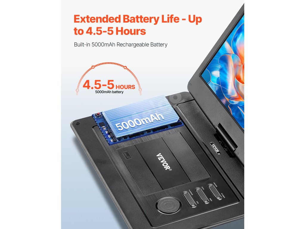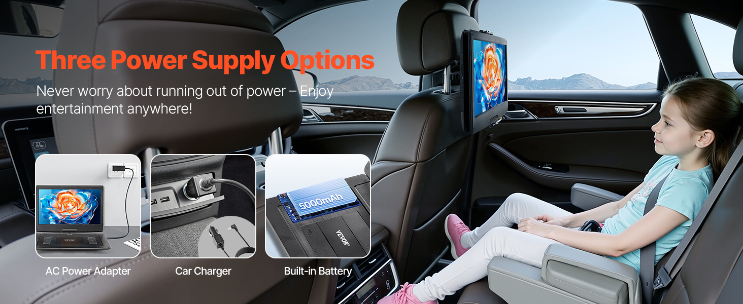 Prenosný DVD prehrávač s obrazovkou má zabudovanú batériu. Užívajte si dlhšie používanie bez obáv z vybitia energie. Sieťový adaptér je ideálny na domáce použitie a nabíjačka do auta umožňuje pohodlné cestovanie. Či už na cesty, alebo na každodenné používanie, je pripravený zabaviť sa v akomkoľvek prostredí.
