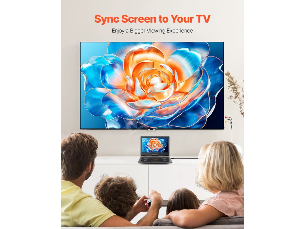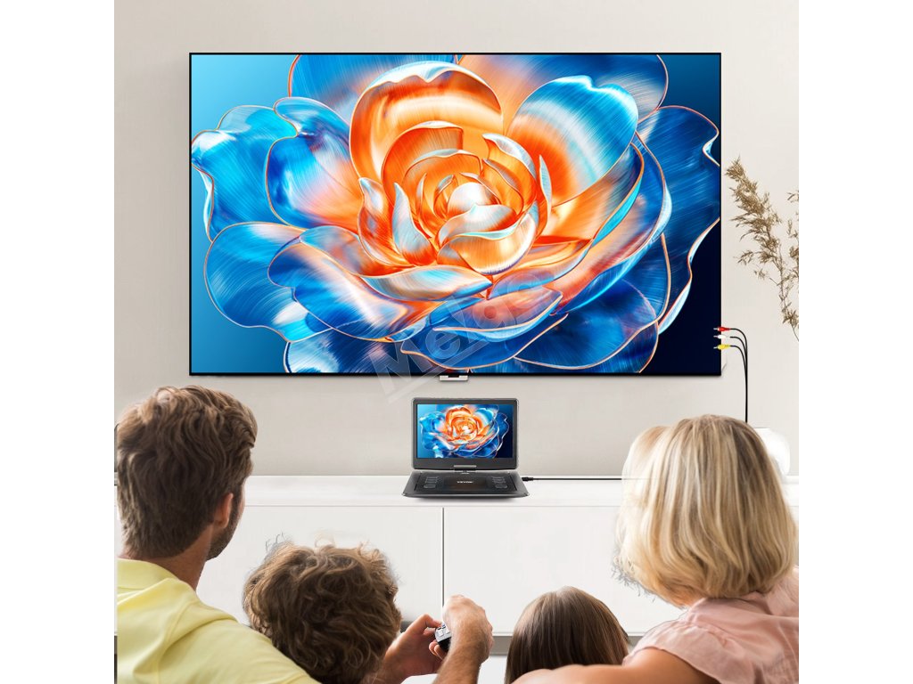 Vďaka AV výstupu môžete obrazovku zariadenia jednoducho synchronizovať s iným DVD prehrávačom rovnakého modelu, televízorom alebo projektorom na spoločné sledovanie. Užite si viac zábavy s rodinou a priateľmi prostredníctvom zábavy na viacerých obrazovkách.