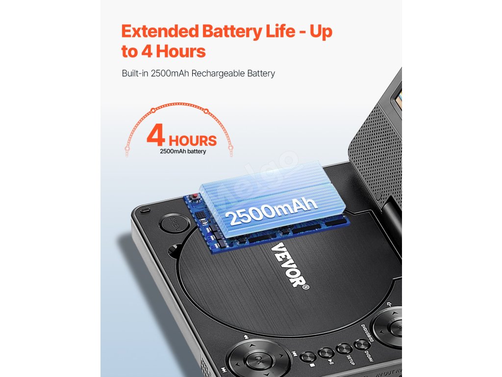 Prenosný DVD prehrávač s obrazovkou má zabudovanú batériu. Užívajte si dlhšie používanie bez obáv z vybitia energie. Sieťový adaptér je ideálny na domáce použitie a nabíjačka do auta umožňuje pohodlné cestovanie. Či už na cesty, alebo na každodenné používanie, je pripravený zabaviť sa v akomkoľvek prostredí.
