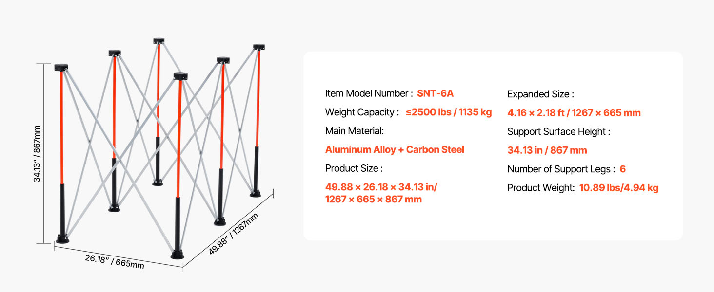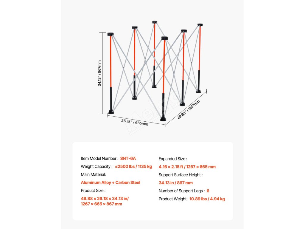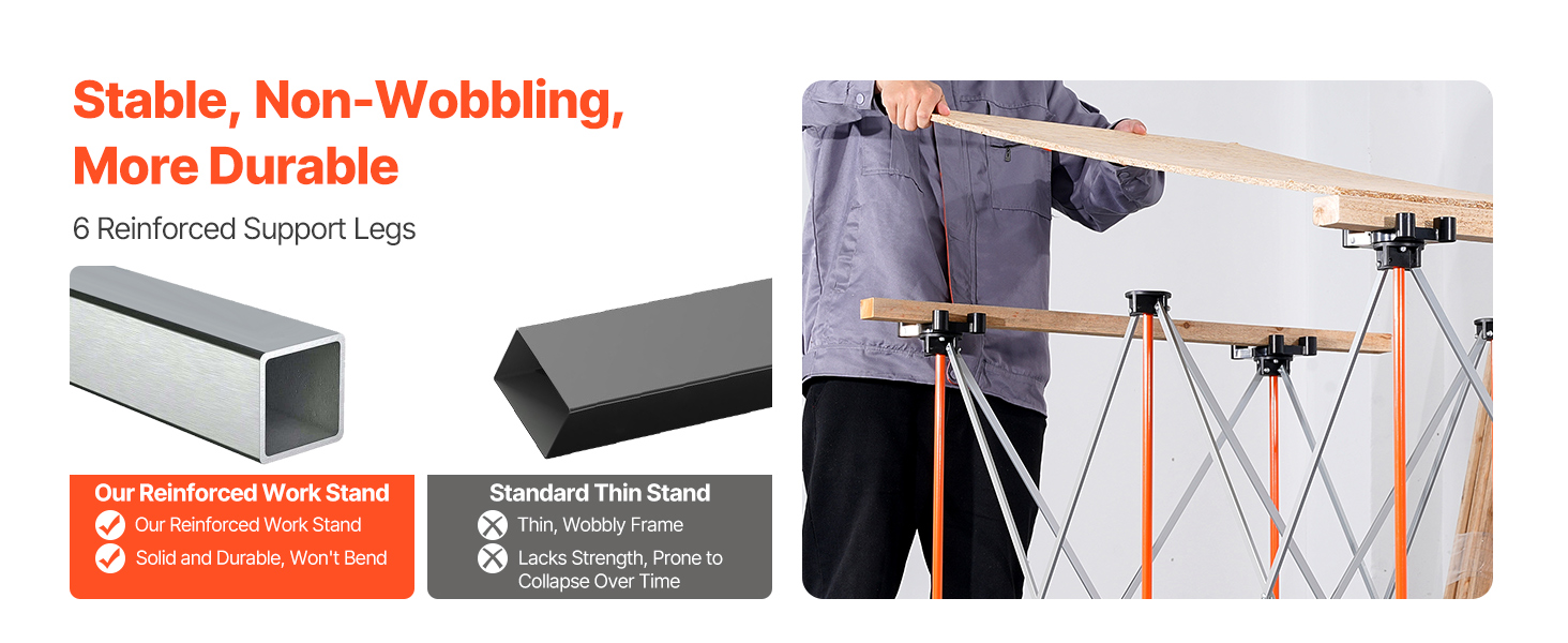 Tento skladací pracovný stojan, vybavený 6 nohami z hliníkovej zliatiny a zosilnenými rúrkami, poskytuje vynikajúcu stabilitu, vďaka čomu sa neohne ani nespadne. Zostáva pevný a stabilný aj pri veľkom zaťažení.
