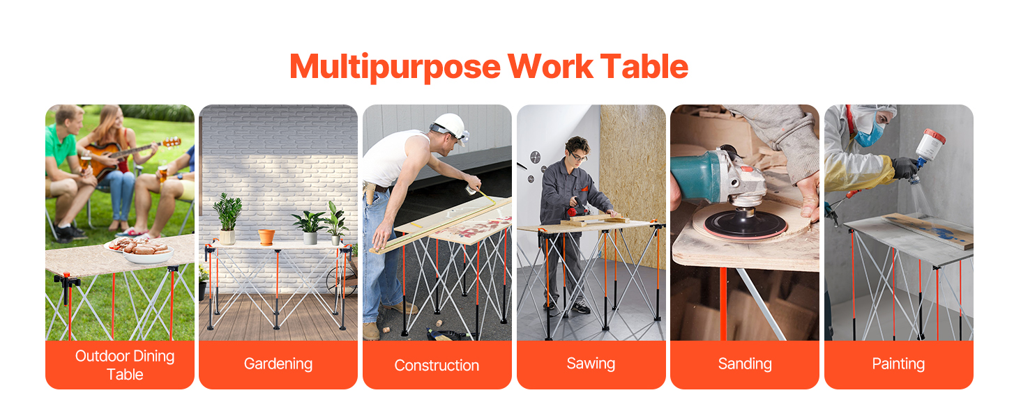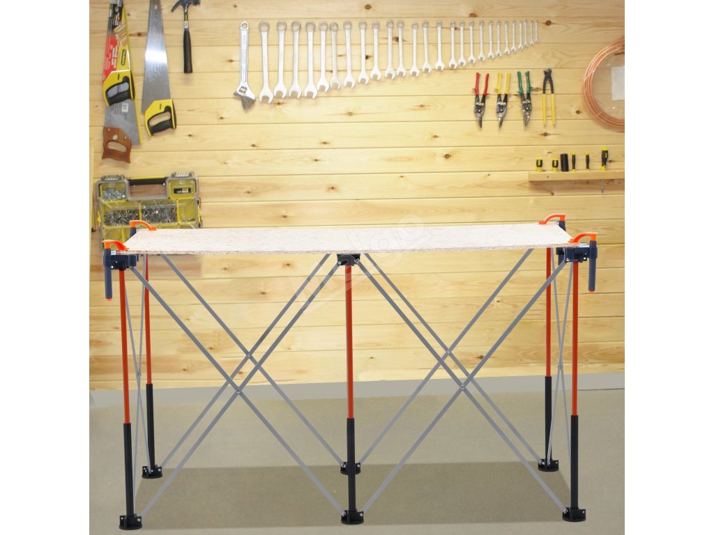 Tento prenosný skladací pracovný stolík je ideálny na rôzne úlohy, možno ho použiť ako vonkajší jedálenský stôl, na záhradkárčenie, stavbu, pílenie, brúsenie, maľovanie a iné. Je navrhnutý tak, aby spĺňal všetky vaše projektové potreby.