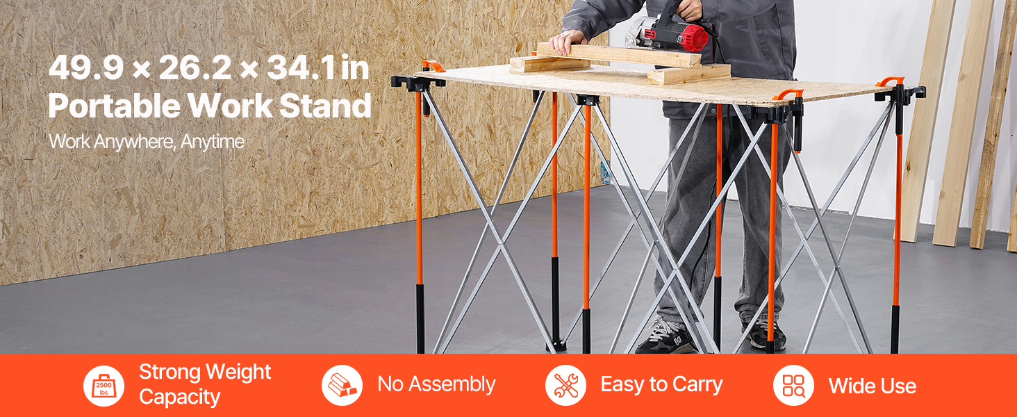 Tento skladací pracovný stojan unesie až 2 500 kg, čo zaručuje vynikajúcu odolnosť a stabilitu. Je pripravený na použitie ihneď po vybalení z krabice a je ideálny na efektívnu prácu kedykoľvek a kdekoľvek - nie je potrebná žiadna montáž.