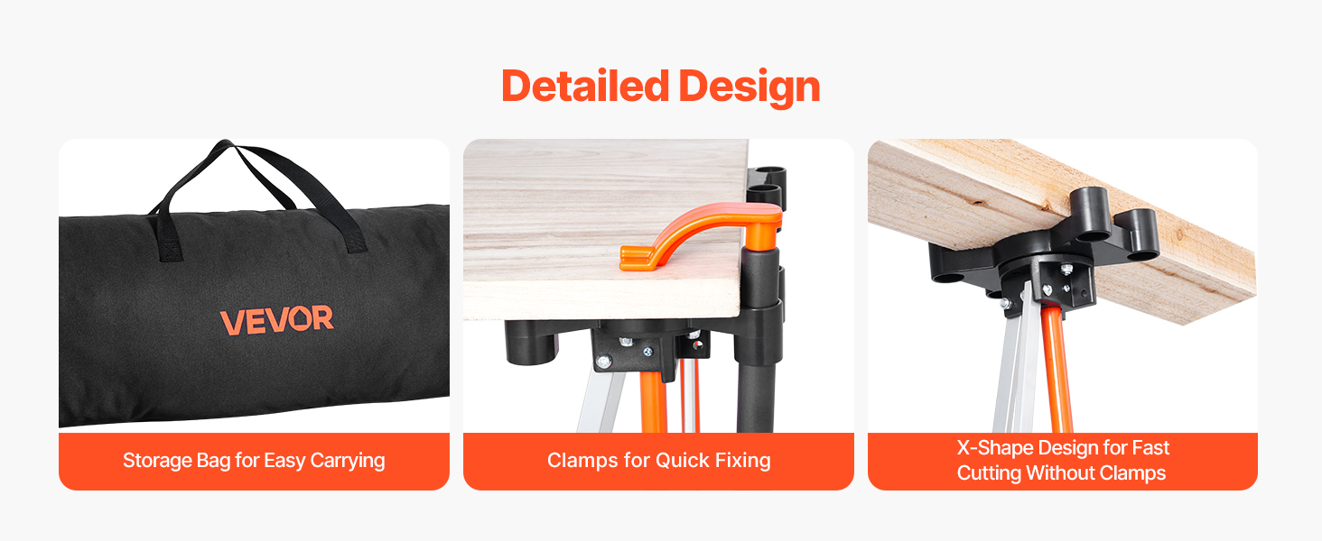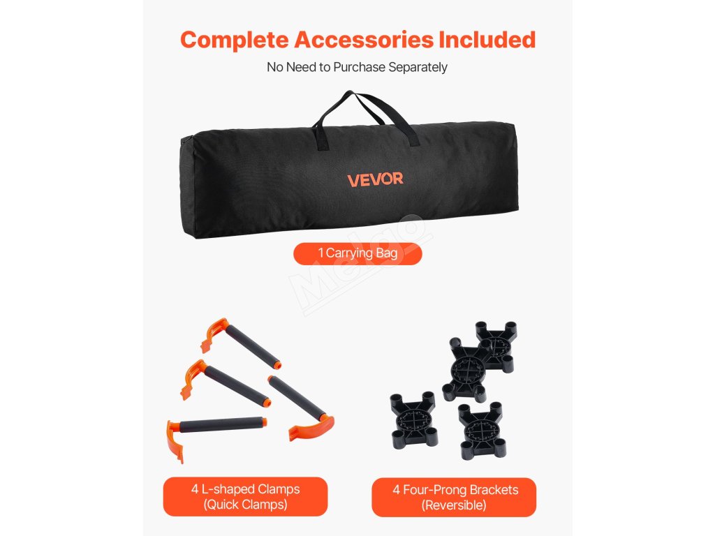 Táto súprava skladacieho pracovného stola, vybavená úložnou taškou, svorkami a ďalším užitočným príslušenstvom, uľahčuje prepravu a zabezpečuje, aby ste mali po ruke správne náradie, takže sa môžete sústrediť na prácu bez starostí s organizáciou náradia.