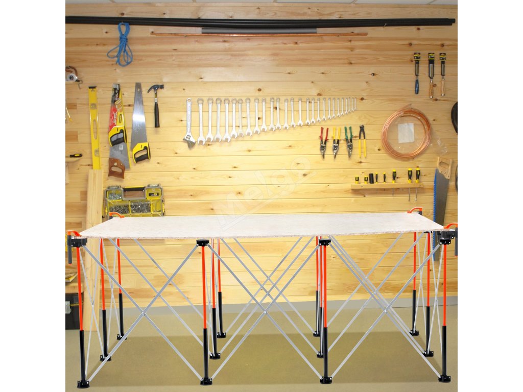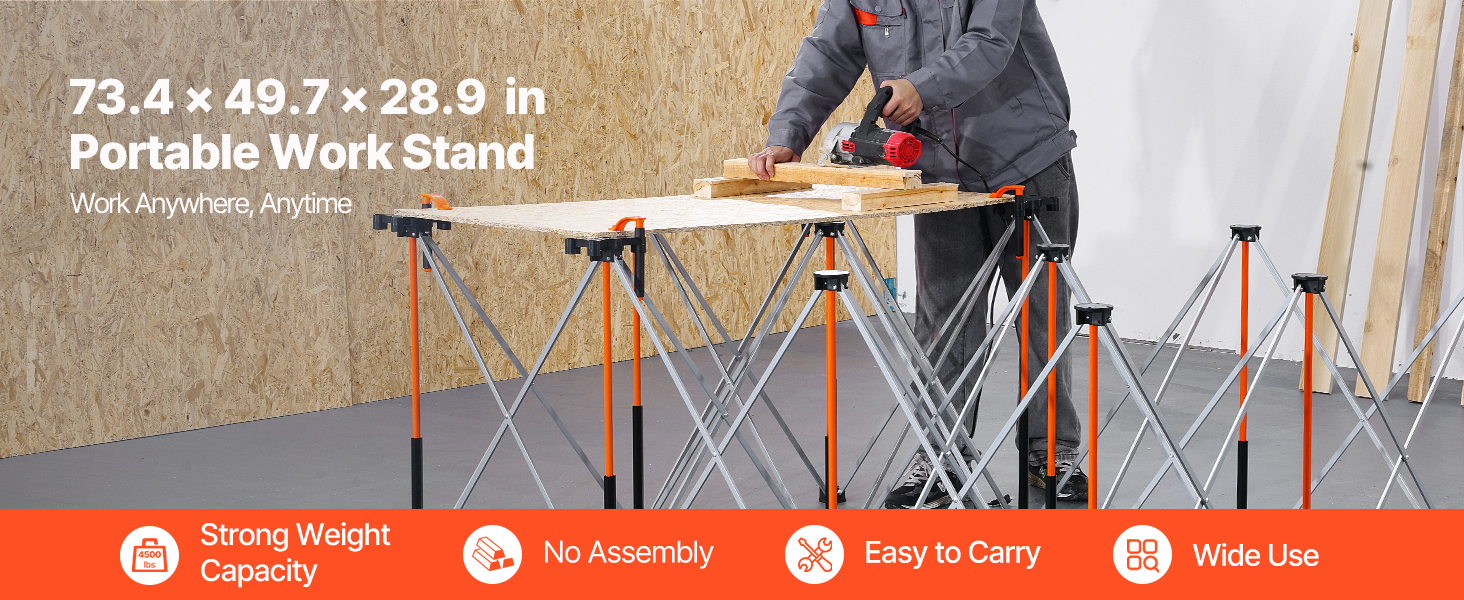 Tento skladací stojan na pracovný stôl unesie až 4500 kg, čo zaručuje vynikajúcu odolnosť a stabilitu. Je pripravený na použitie ihneď po vybalení z krabice a je ideálny na efektívnu prácu kedykoľvek a kdekoľvek - nie je potrebná žiadna montáž.