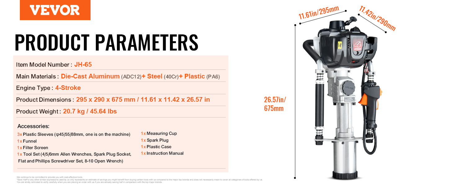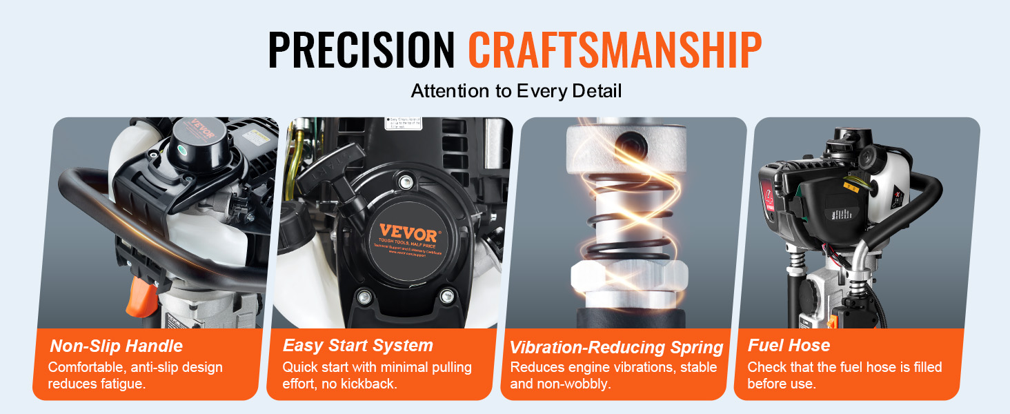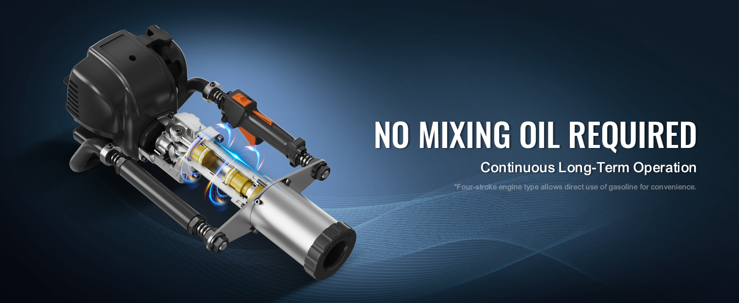 Vysoko výkonný motor so silným výkonom vám umožňuje klásť pilóty rýchlo, stabilne a presne, takže môžete rýchlejšie a ľahšie dokončiť prácu. Beží hladko, nezadrháva sa pri vysokej teplote ani nespáli olej v zmesi a môže pracovať nepretržite dlhý čas.