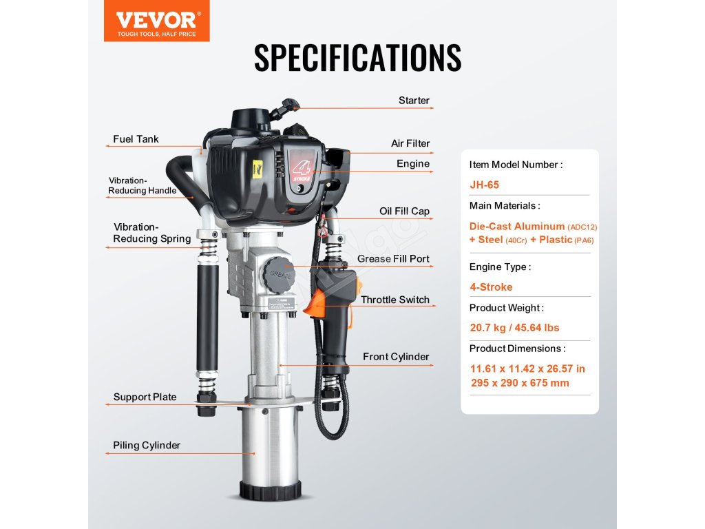 VEVOR Pile Driver, dvojnásobná účinnosť
