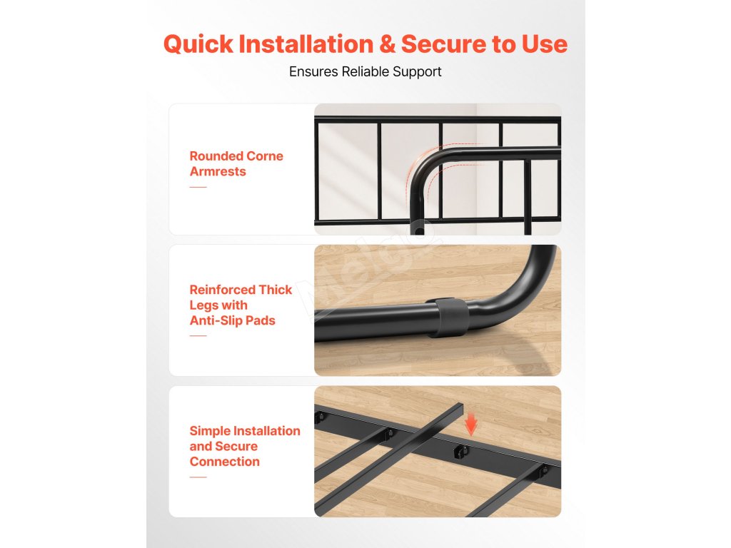 Táto kovová denná posteľ vyrobená s pevným kovovým rámom a pevne spojenou konštrukciou z rúrok unesie až 400 kg, čím poskytuje výnimočnú nosnosť. Je stabilná a odolná voči kolísaniu alebo deformácii, čo zaručuje dlhodobé používanie.