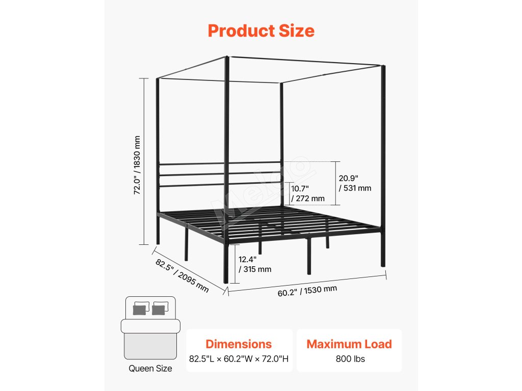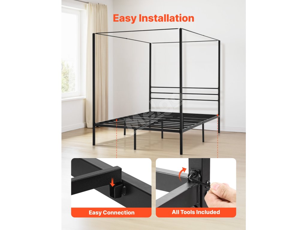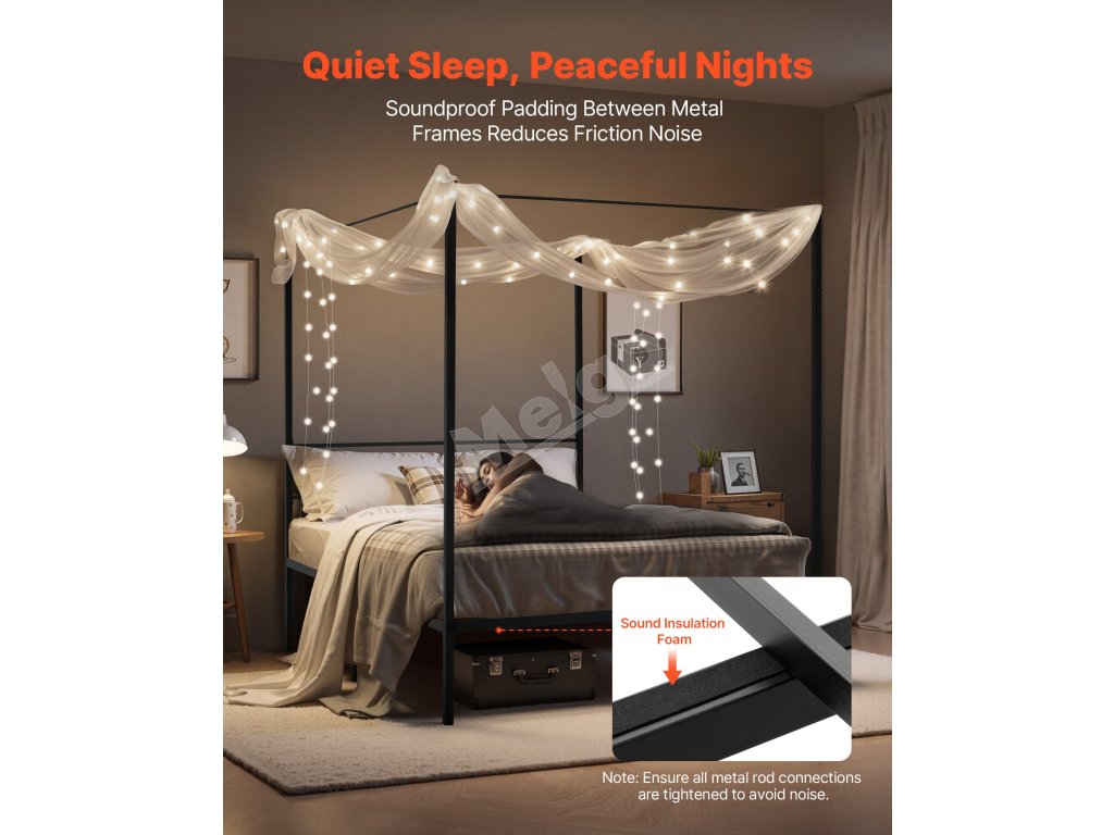 Kovová posteľ queen s baldachýnom 4 stĺpy latový rošt úložný priestor