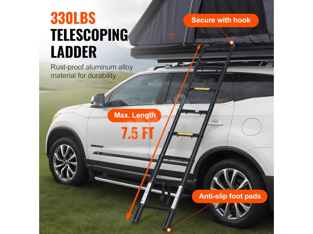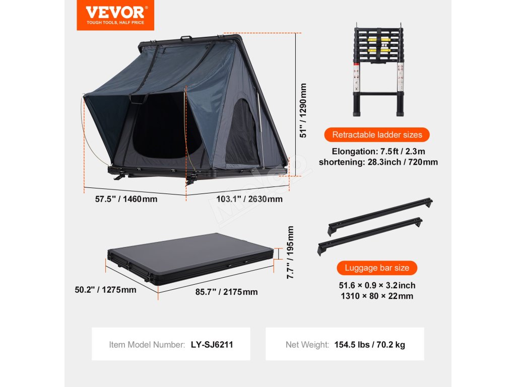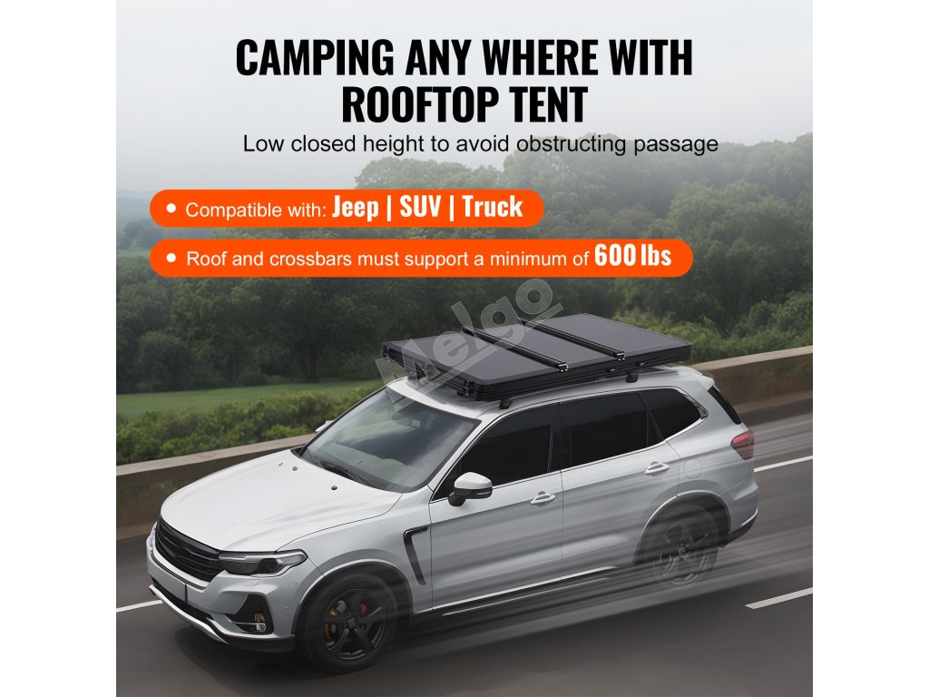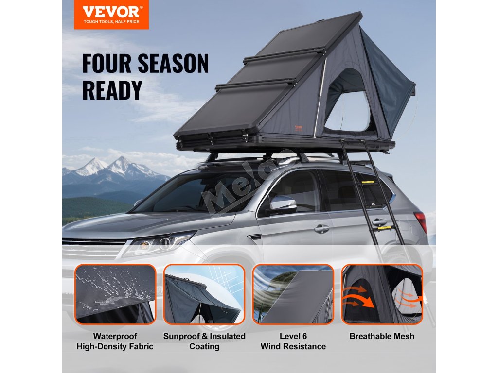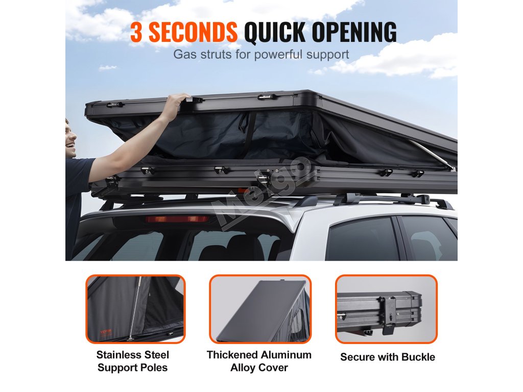 Hliníkový pevný plášť je odolný a nárazuvzdorný, zatiaľ čo nosné tyče z nehrdzavejúcej ocele hladko postavia strešný stan len za 3 sekundy.