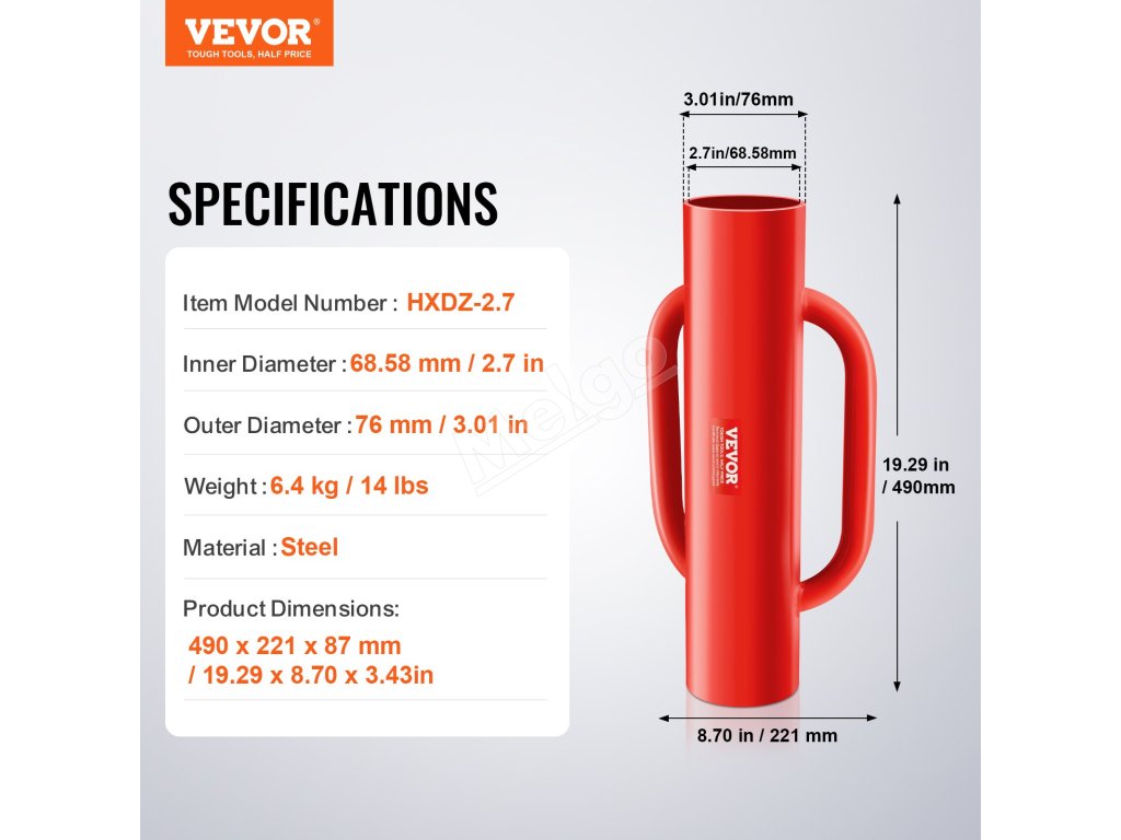 Na výber sú dve veľkosti ručného pilótovníka na ploty s vnútorným priemerom 2,7 palca / 4,11 palca, môžete si vybrať pilótovník, ktorý potrebujete, podľa hrúbky vnútorného priemeru pilót.