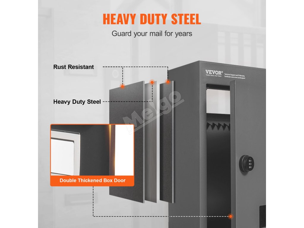 Naša kódová schránka je vyrobená z robustnej ocele a je práškovo lakovaná pre dodatočnú ochranu proti korózii. To zaručuje dlhú životnosť a odolnosť voči korózii. Práškové lakovanie zvyšuje odolnosť a časom si zachováva atraktívny vzhľad.