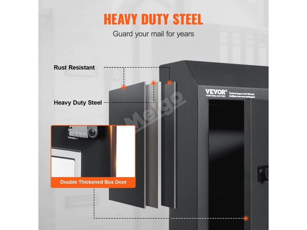 Môžete sa bez obáv spoľahnúť na našu schránku na kľúče cez dvere s jedinečnou klapkou odolnou proti dažďu, ktorá funguje ako pevný strážca, ktorý udrží búrky na uzde a zabezpečí ochranu vašej pošty.
