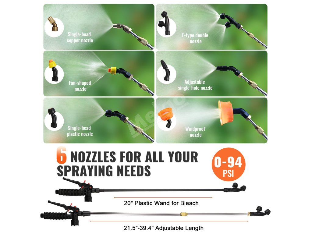 Náš batériový postrekovač na chrbát obsahuje 6 trysiek, 2 tyčinky, odmernú fľašu, filter na tvárovú masku a sadu tesniacich krúžkov na zlepšenie vášho zážitku.