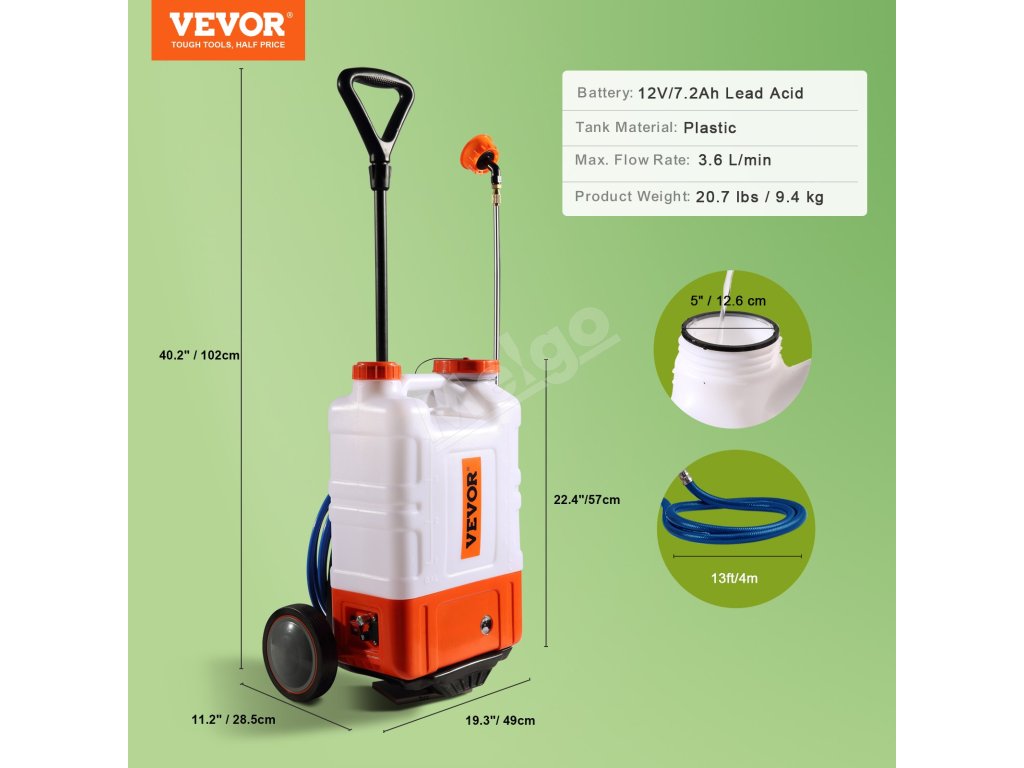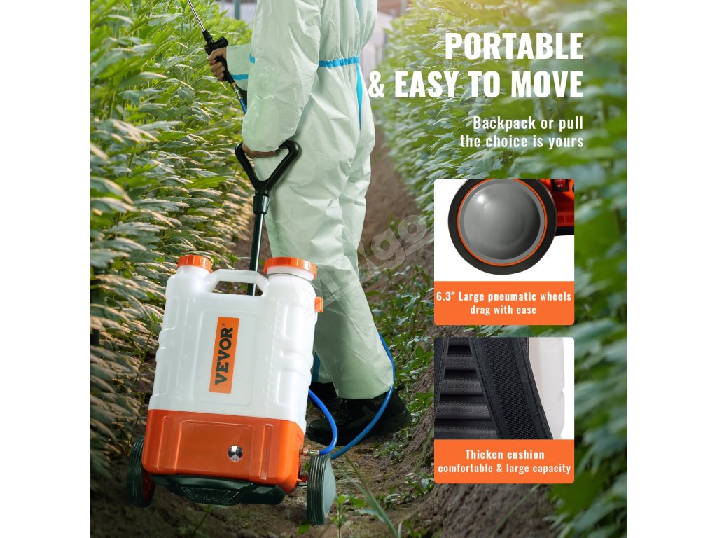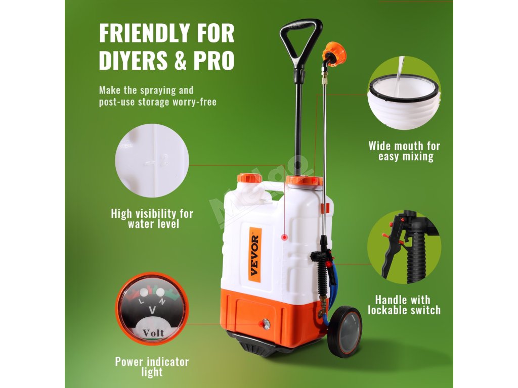 Náš batériový postrekovač je vybavený batériou s dlhou životnosťou a vozíkom, ktorý vám ušetrí čas a prácu. Odstráňte svoje starosti a začnite svoj ďalší projekt s VEVOR!