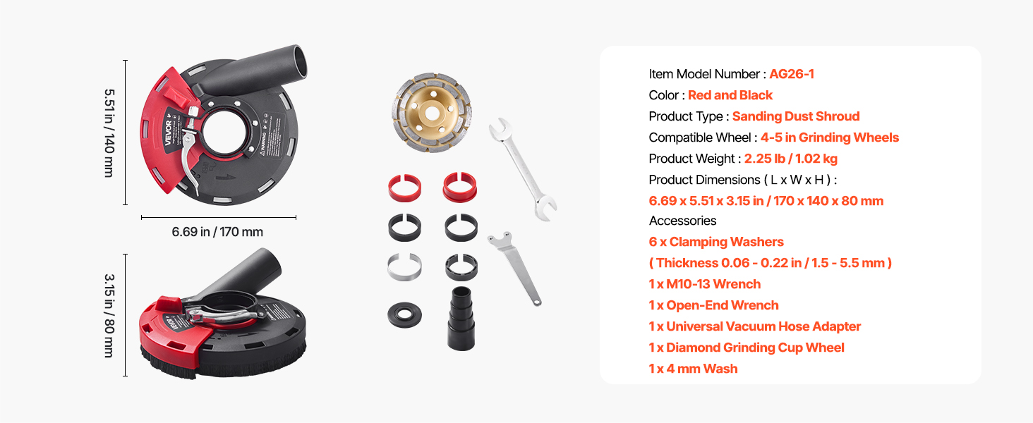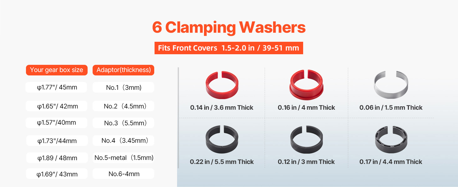 Náš ochranný kryt pre brúsky na povrch je kompatibilný s väčšinou predných krytov s priemerom 1,5-2,01 palca. Priložených 6 upínacích podložiek s hrúbkou od 0,06 do 0,22 palca poskytuje flexibilné a presné uchytenie pre rôzne uhlové brúsky.