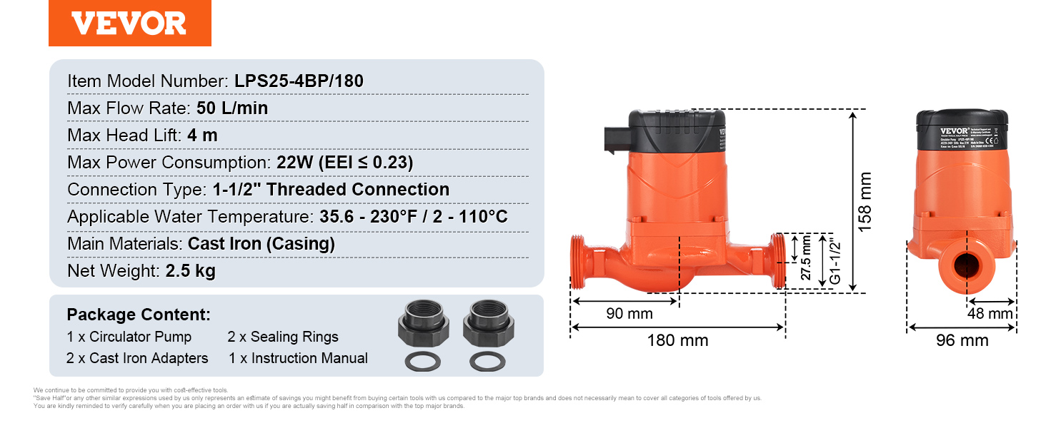 Toto obehové čerpadlo na teplú vodu je navrhnuté s dvoma robustnými gumovými tesniacimi krúžkami, ktoré zabraňujú netesnostiam v miestach pripojenia, čím chránia váš vykurovací systém pred poškodením vodou a pomáhajú vám vyhnúť sa zbytočným opravám alebo plytvaniu vodou.