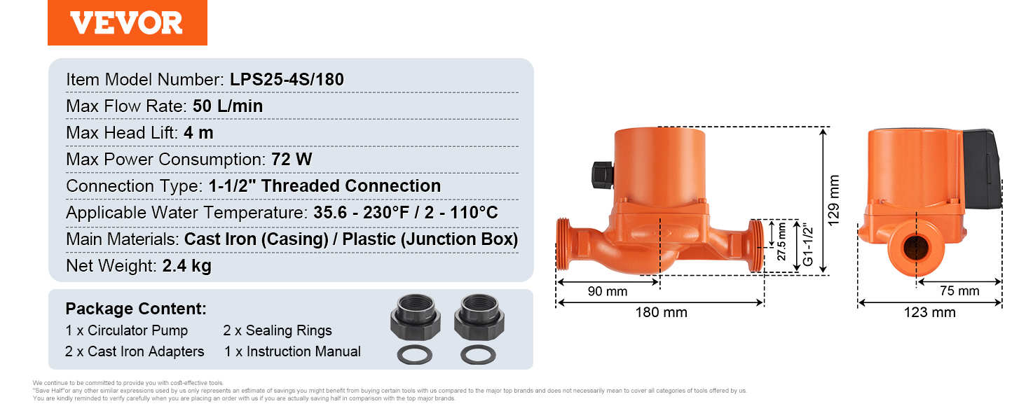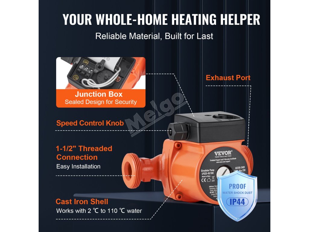 Toto obehové čerpadlo na teplú vodu je navrhnuté s dvoma robustnými gumovými tesneniami, vďaka čomu zabraňuje netesnostiam v miestach pripojenia, chráni váš vykurovací systém pred poškodením vodou a pomáha vám vyhnúť sa zbytočným opravám alebo plytvaniu vodou.