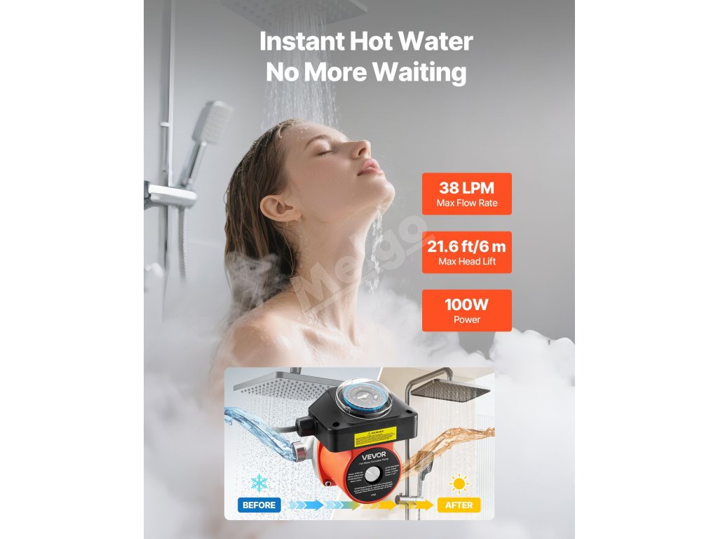 Vďaka pokročilej obtokovej technológii dodáva okamžitú teplú vodu do celého domu, čím znižuje dlhé čakanie a plytvanie studenou vodou. Programovateľný časovač umožňuje nastaviť presné prevádzkové intervaly. Vďaka odolnej hlave čerpadla z nehrdzavejúcej ocele zabezpečuje dodávku čistej pitnej vody.