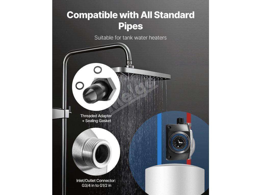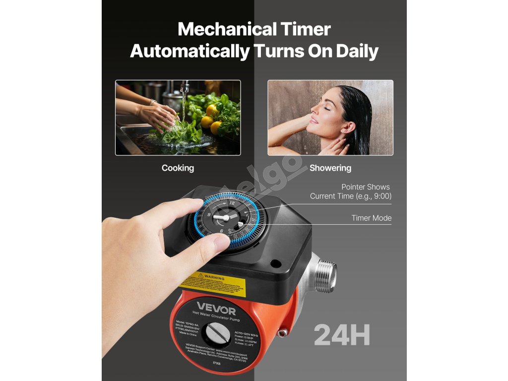 Zabudovaný mechanický časovač vám umožňuje nastaviť presné prevádzkové obdobia pre obehové čerpadlo teplej vody, ktoré zodpovedajú špičkovej a mimošpičkovej spotrebe vody v domácnosti. Vychutnajte si teplú vodu vtedy, keď ju potrebujete, bez zbytočného chodu - ušetríte tak energiu, peniaze a problémy.